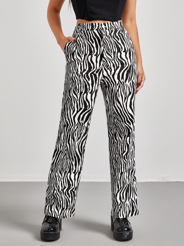 Hose mit schrägen Taschen und Zebra Streifen