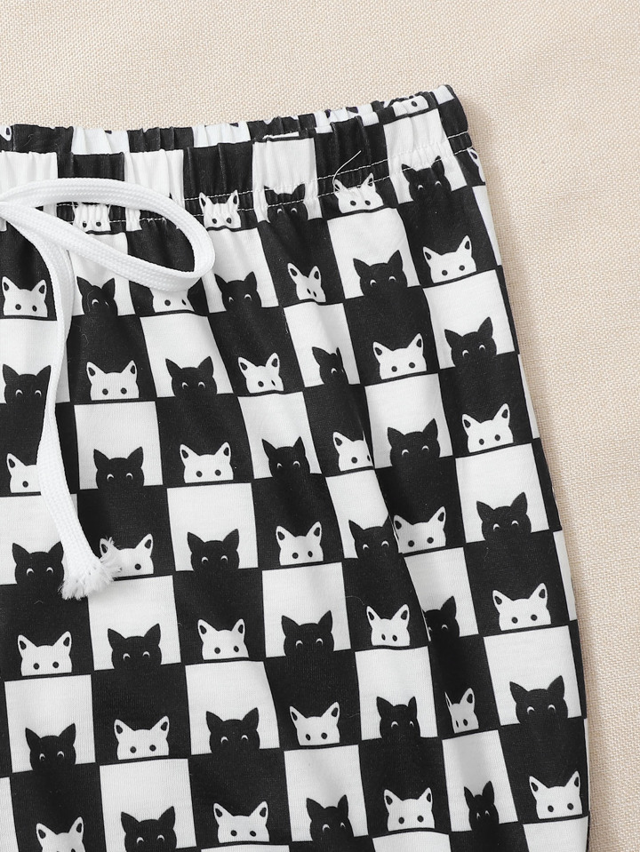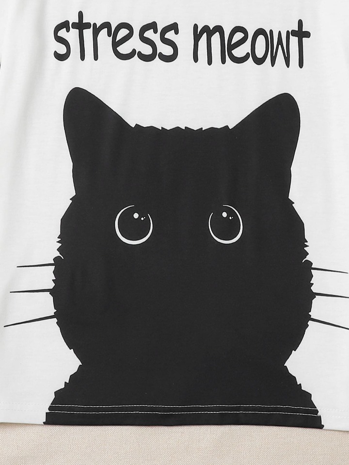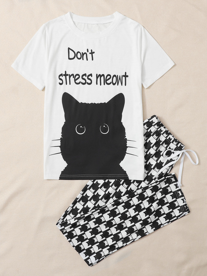 Schlafanzug Set mit Buchstaben & Katze Muster