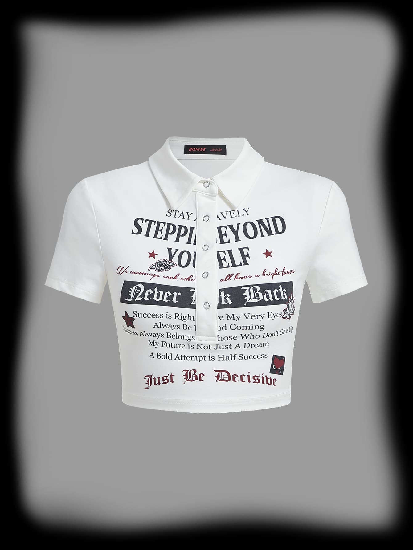 Crop T-Shirt mit Buchstaben Grafik, halber Knopfleiste,