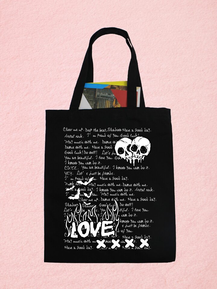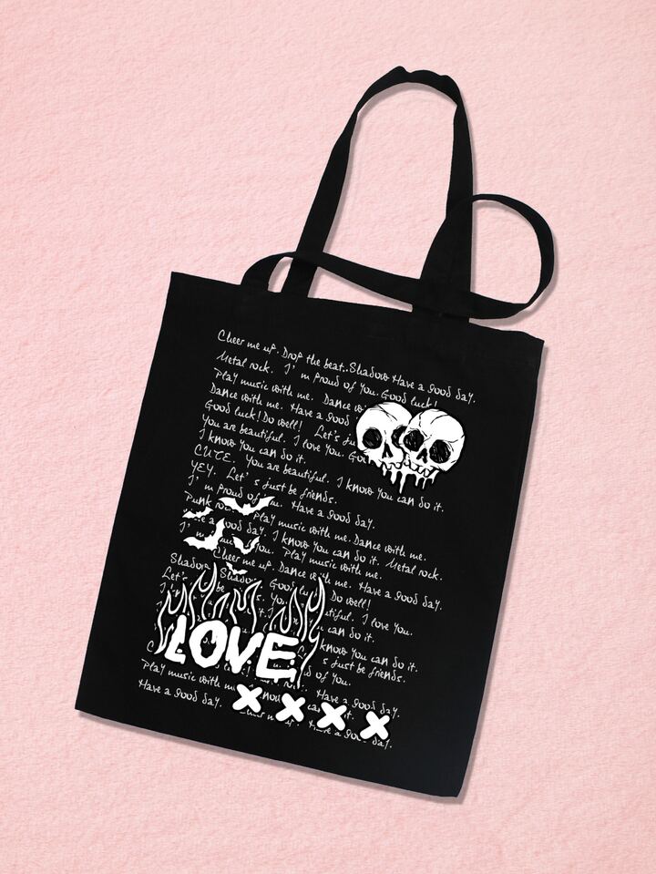 Einkaufstasche mit Buchstaben & Schädel Grafik,