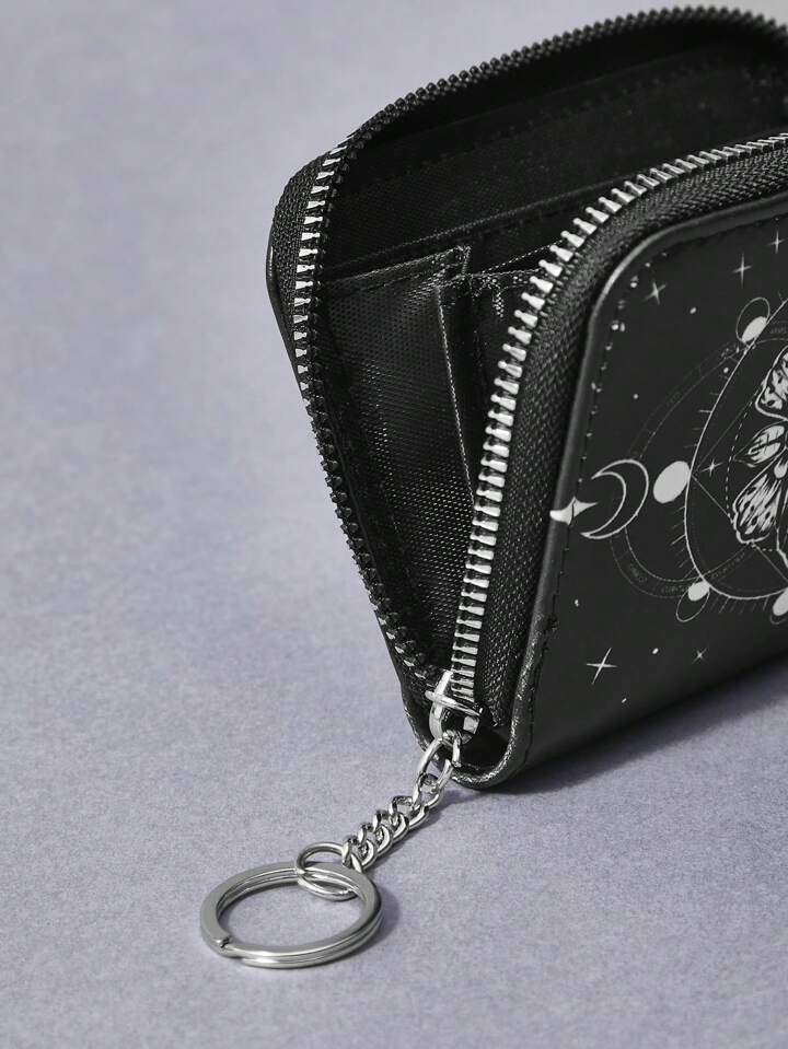 Kleine Geldbörse mit Gothic Schmetterlings und Mondgrafik und Reißverschluss