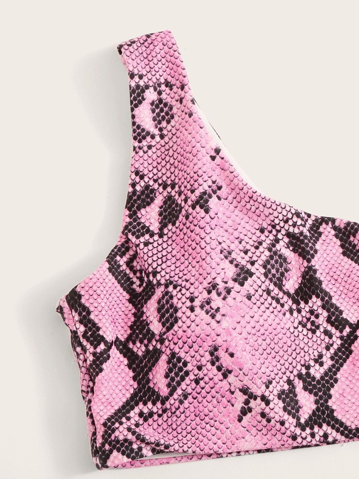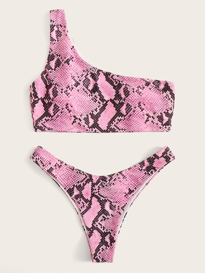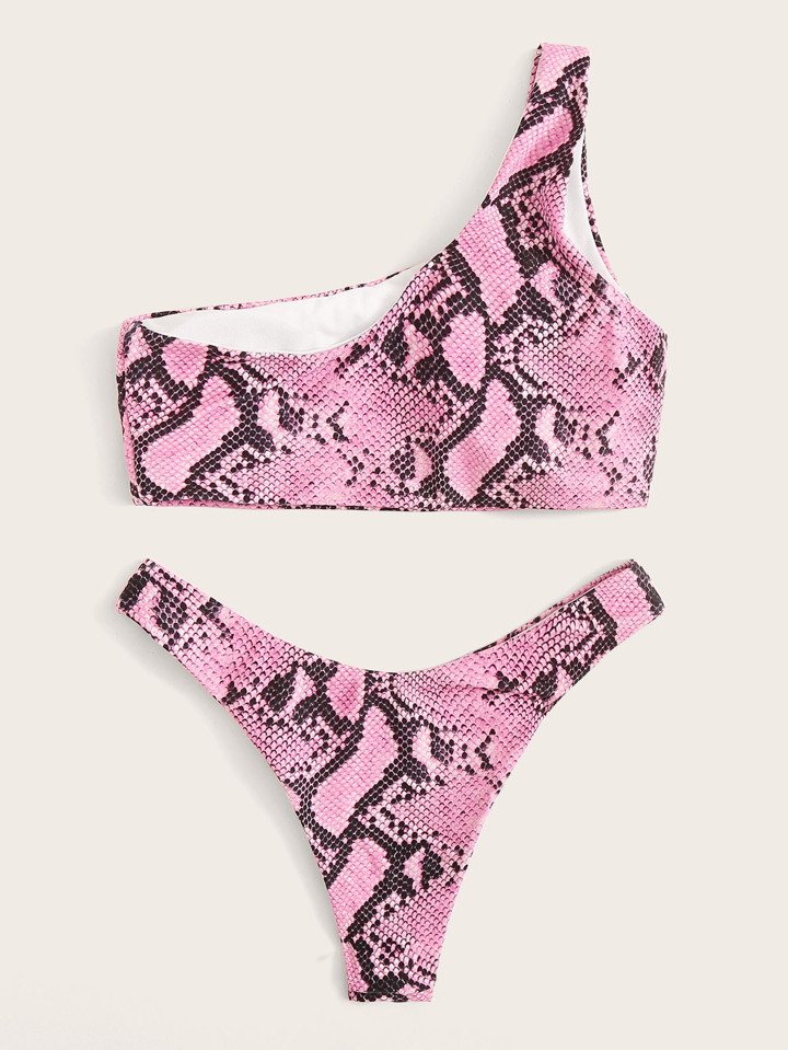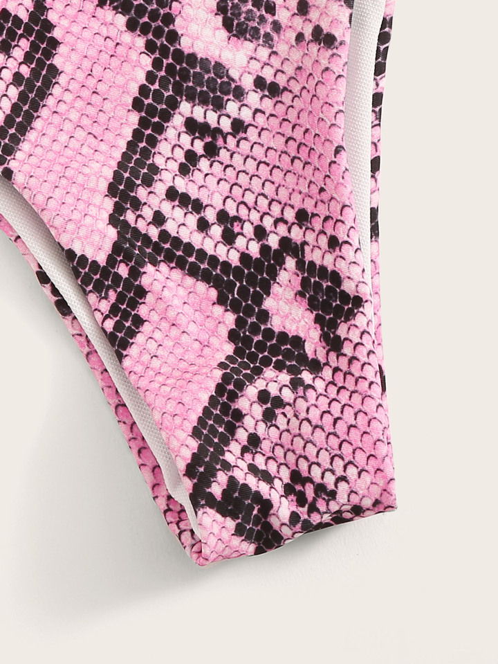 Schulterfreies Top mit Schlangenhaut-Muster und hochgeschnittenem Bikini-Höschen