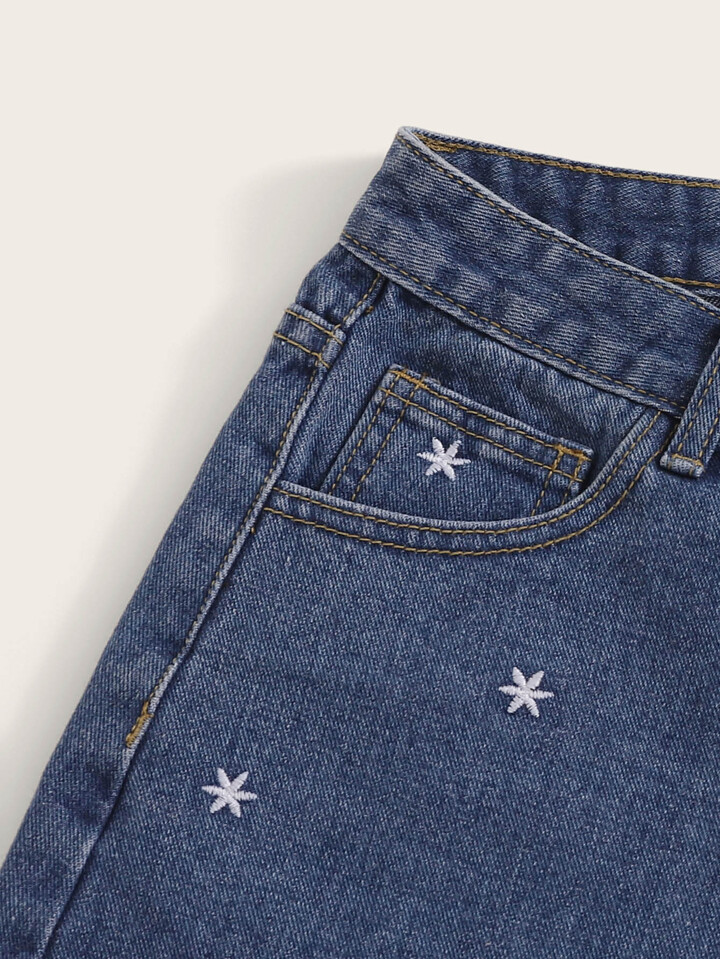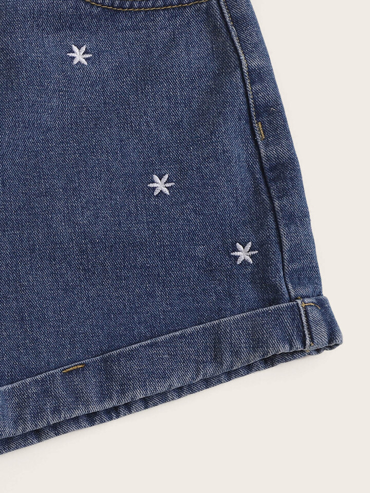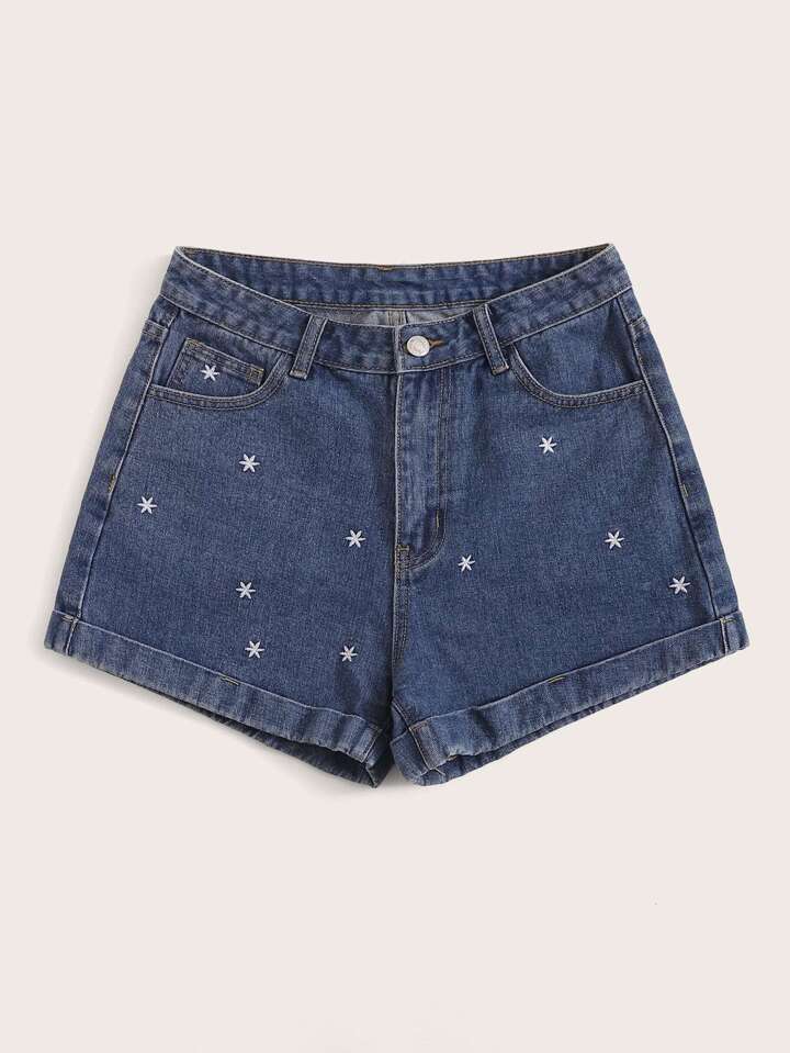 Jeans Shorts mit Sonne Stickereien und Knöpfen