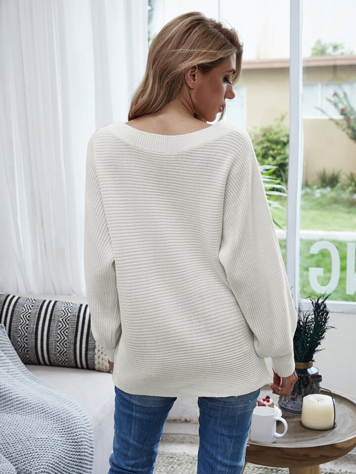 Einfarbiger Pullover mit Fledermausärmeln und Bootkragen