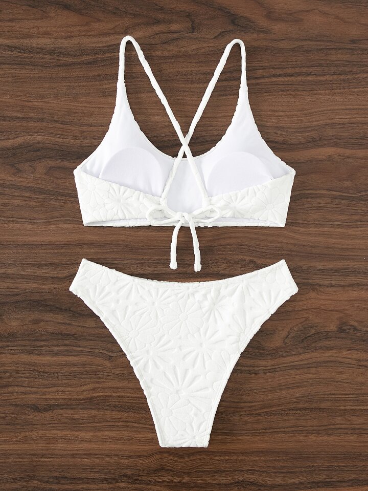 Einfarbiger Bikini-Set mit strukturiertem Schnürungsrücken aus BH und Bikini-Hose, 2-teiliger Bikini für den Sommer und den Strand