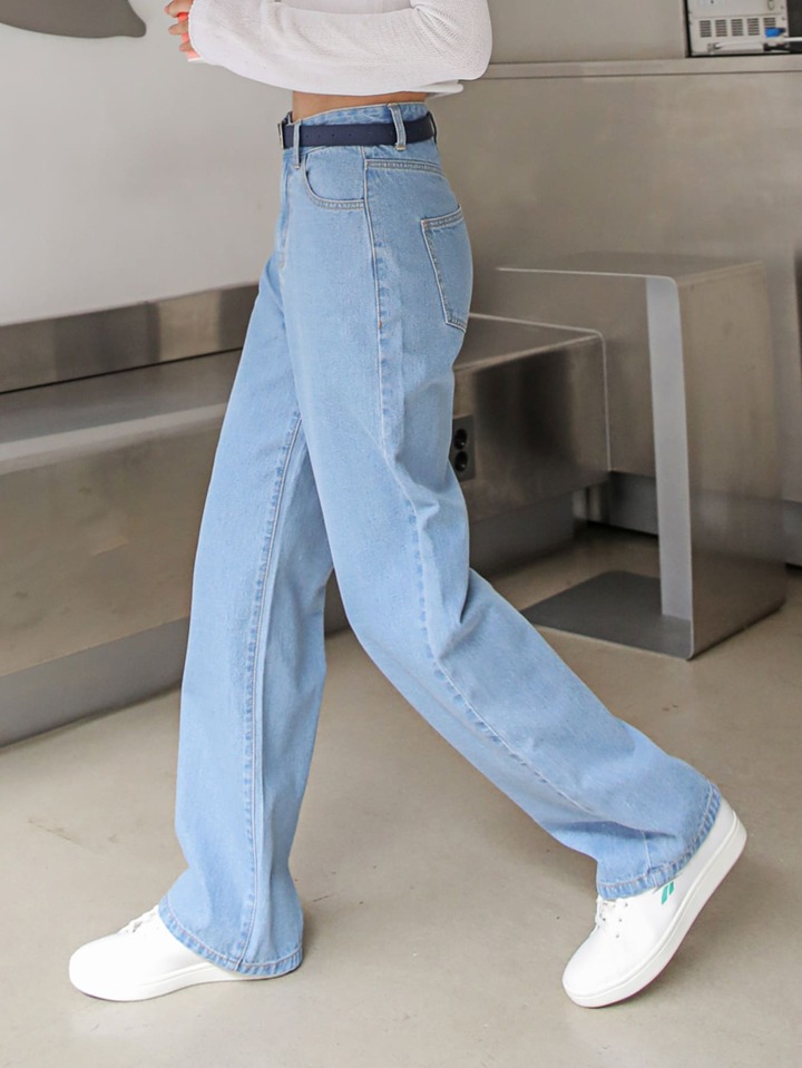 Einfarbige Boyfriend Jeans ohne Gürtel