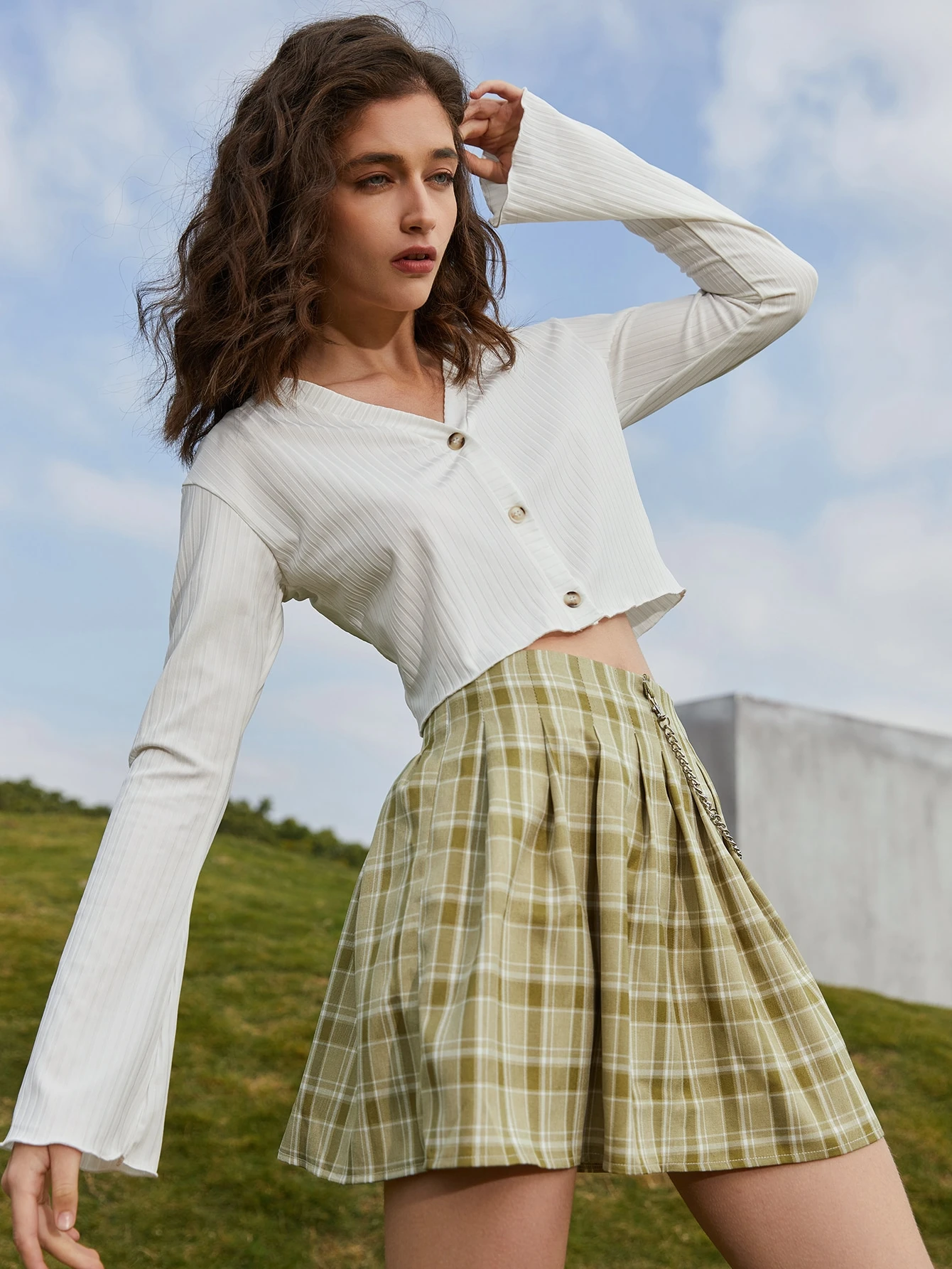 Einfarbiges Crop T-Shirt mit Knöpfen vorne