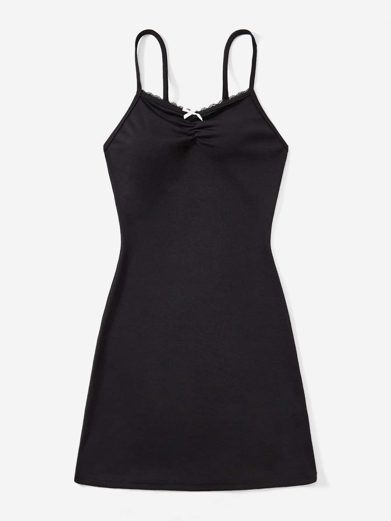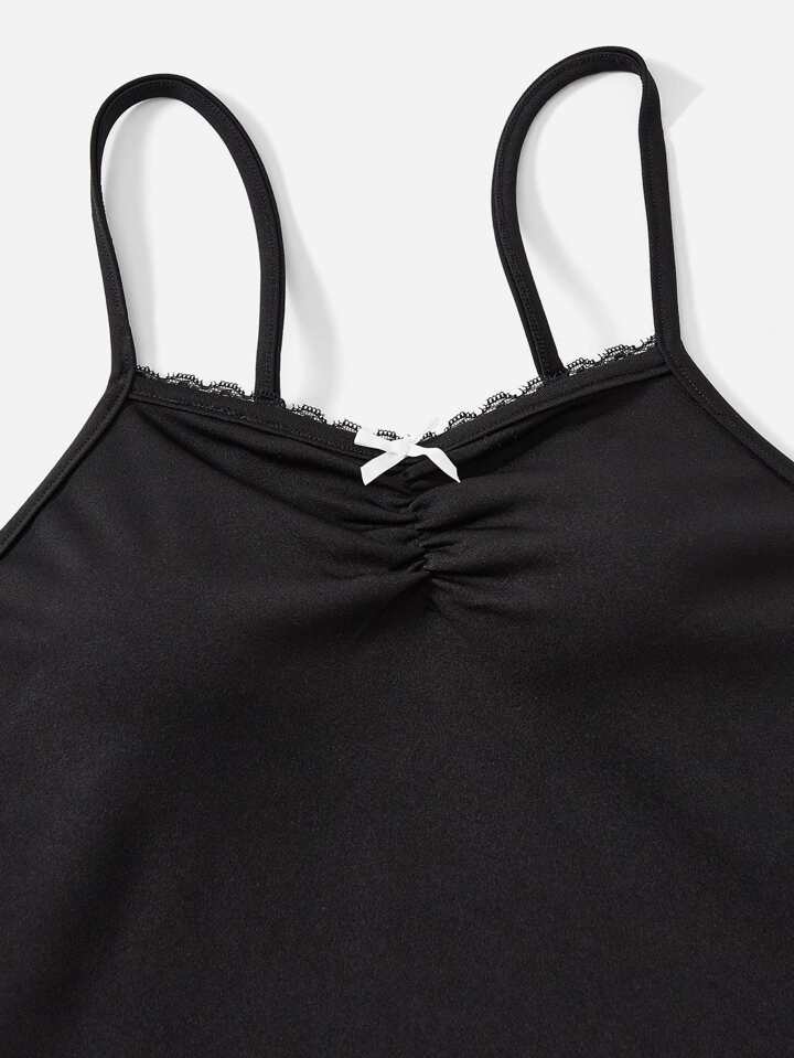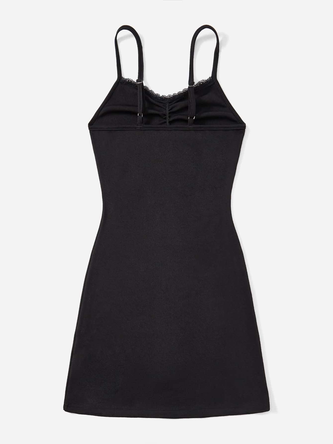 Cami Kleid mit Einfarbig Kontrast Spitzen