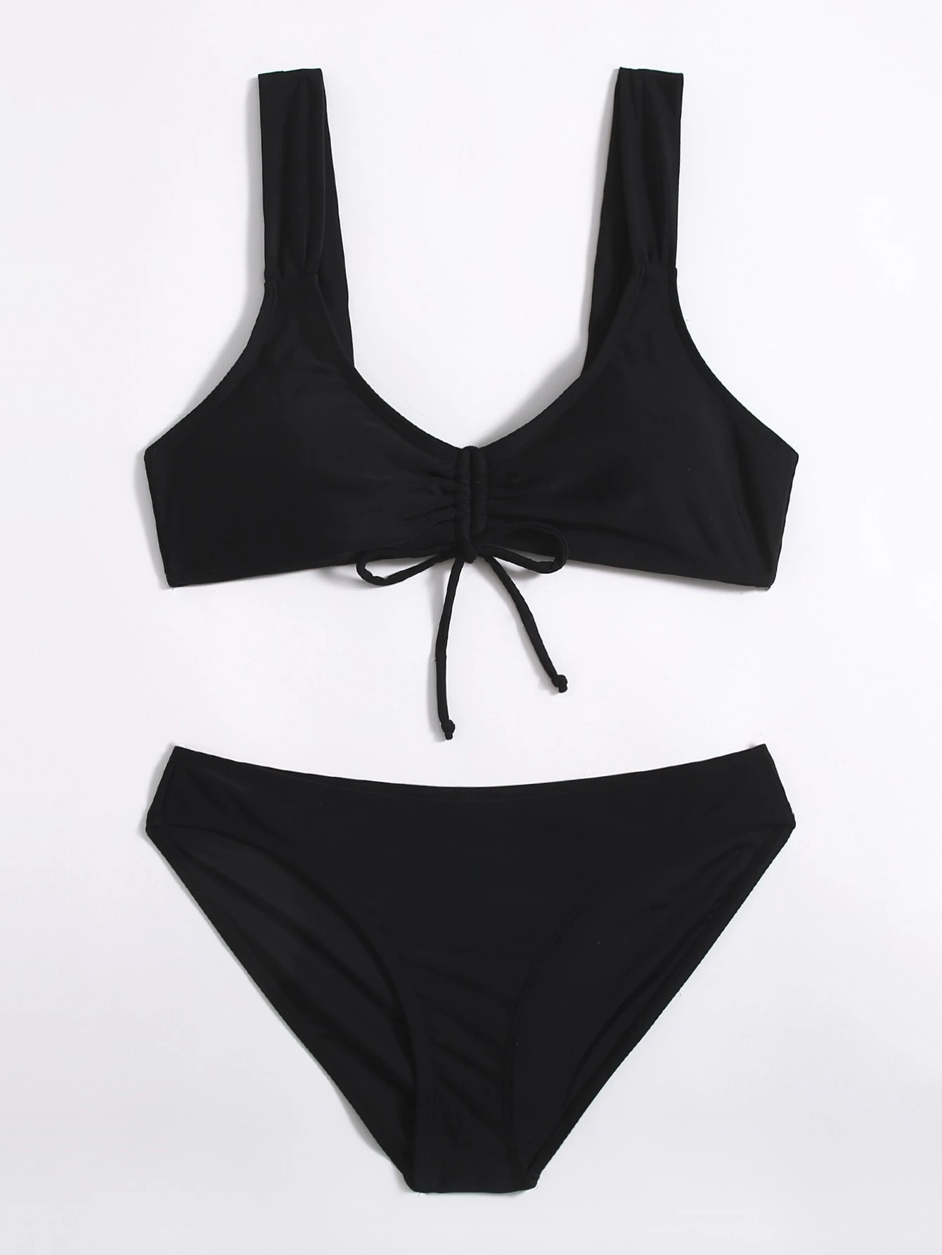 Einfarbiges Bikini-set Mit Kordelzug Für Den Sommerurlaub Am Strand