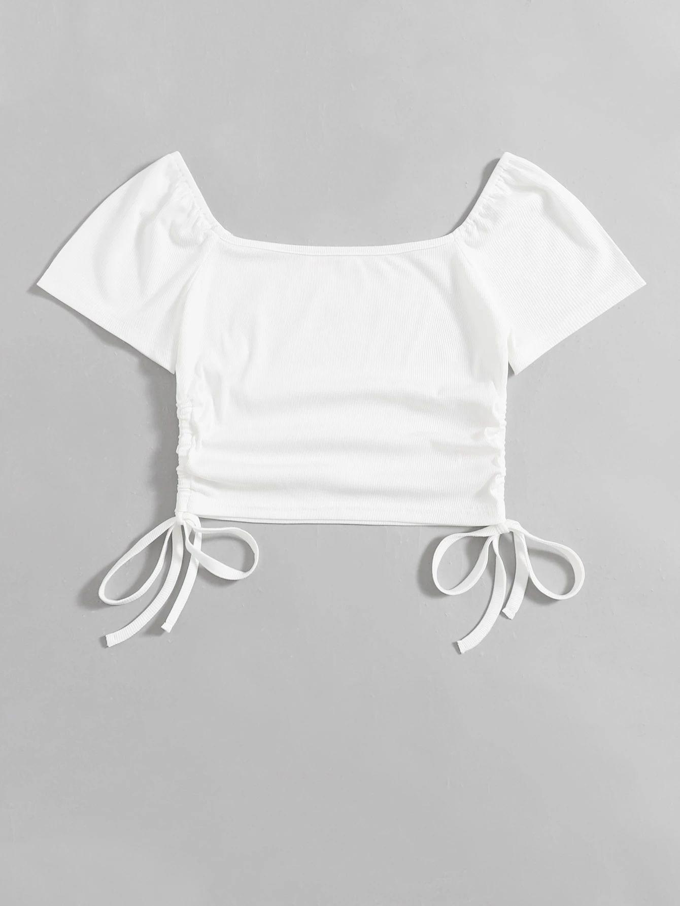 Einfarbiges geripptes T-Shirt mit Kordelzug