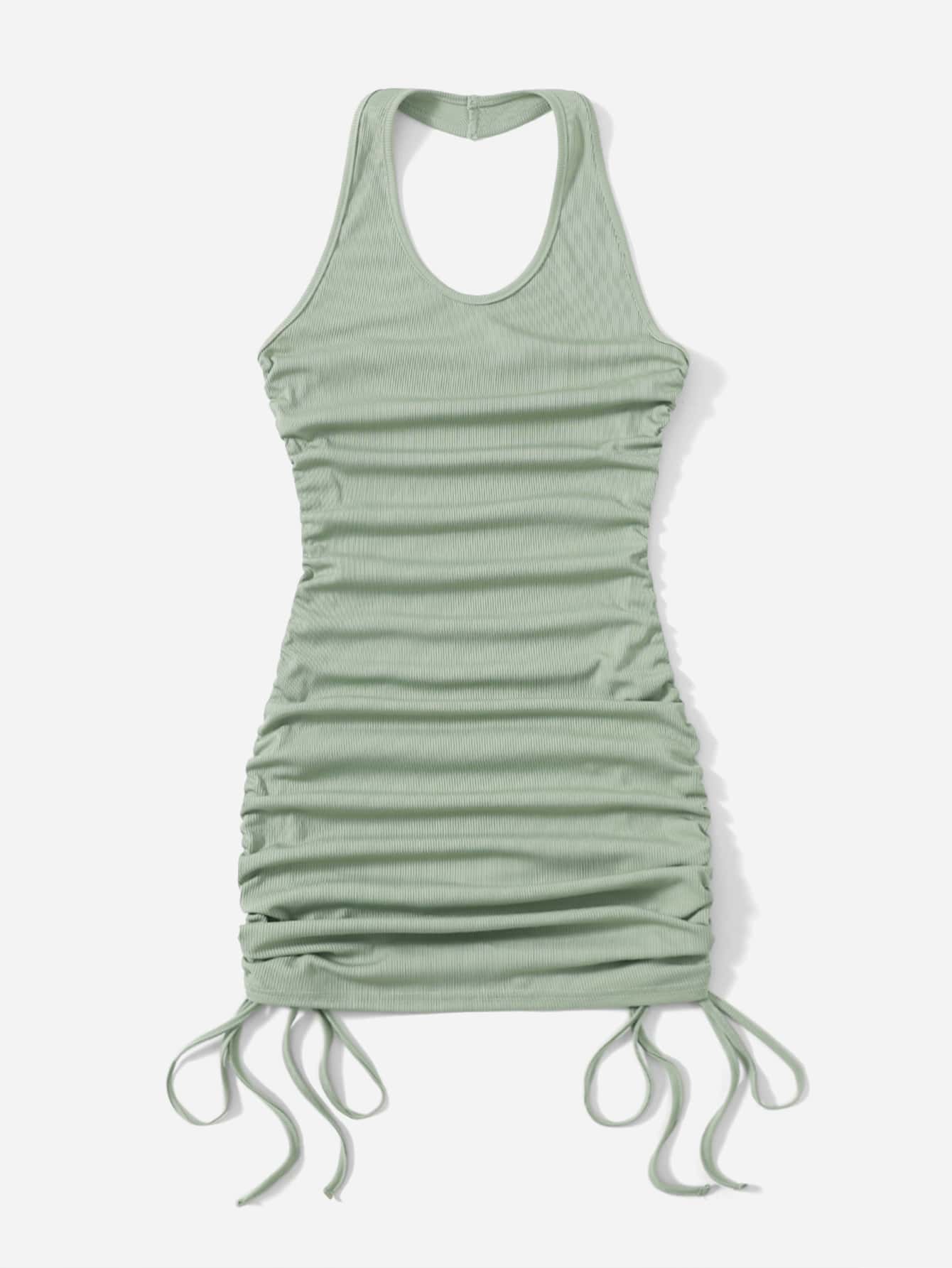 Halter Kleid mit Tunnelzug, Rüschen