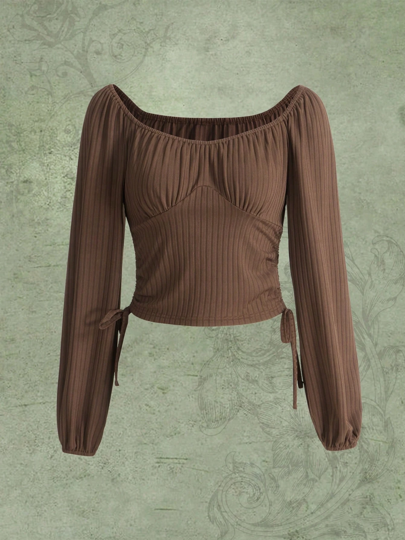 T-Shirt mit Einfarbig seitlichem Schnürzug,