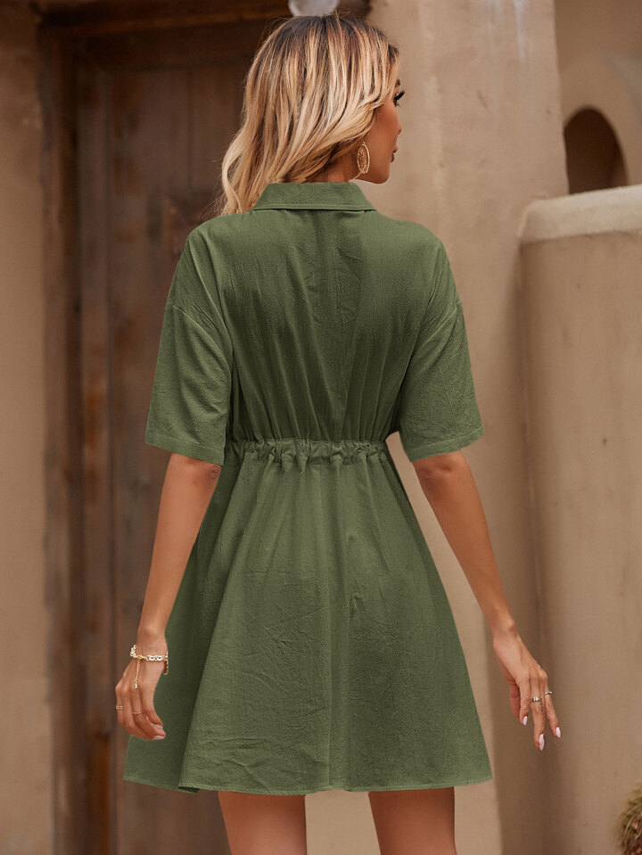 Einfarbiges Hemdkleid mit doppelten Taschen und Schnürung