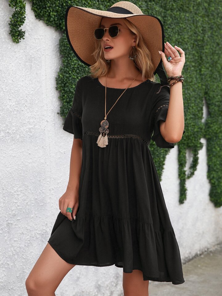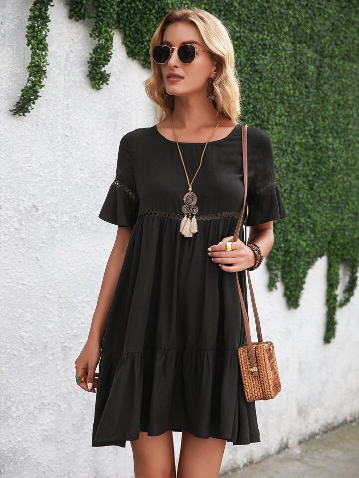 Babydoll Kleid mit Volant Ärmeln