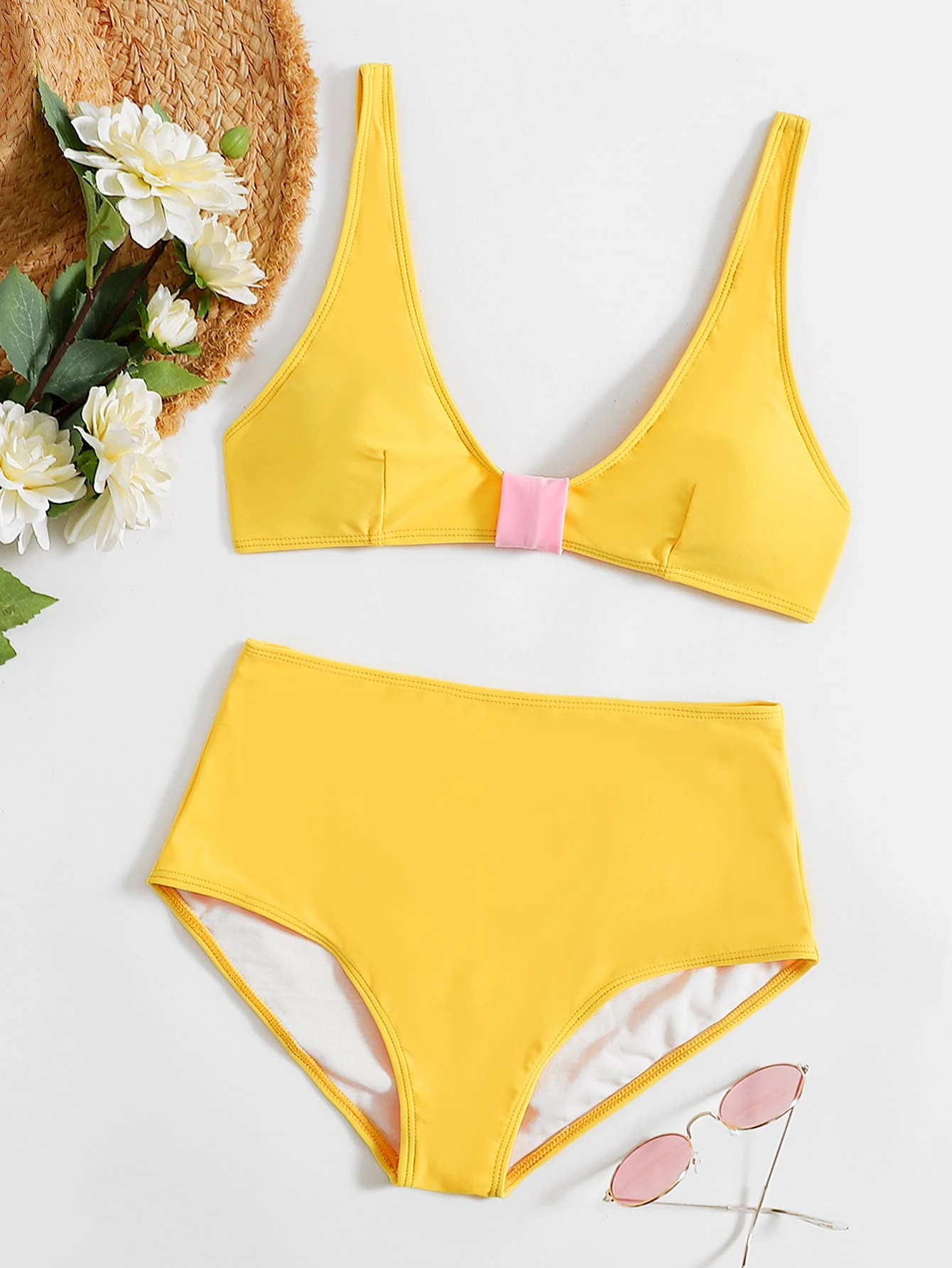 Solide Bikini Set mit hoher Taille für den Sommer am Strand