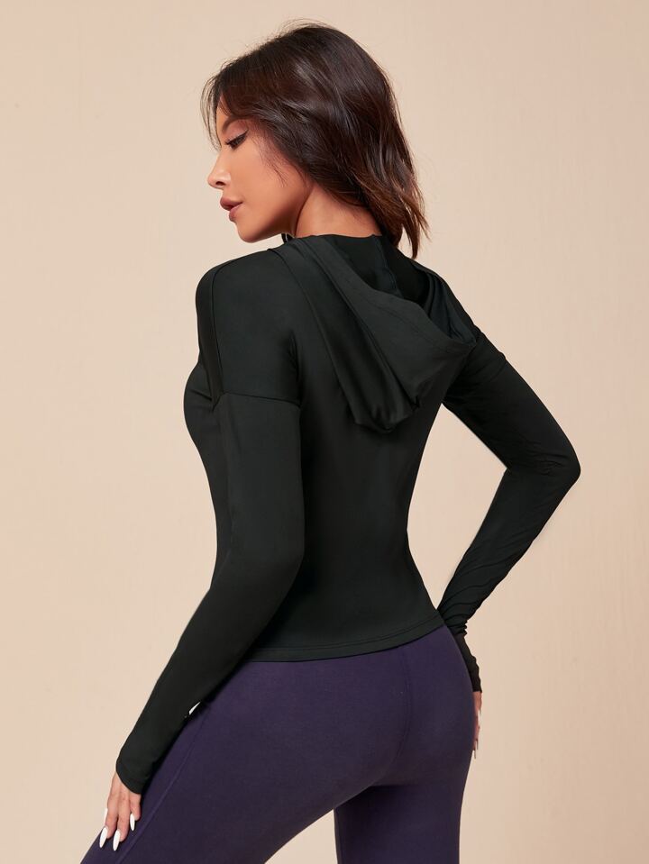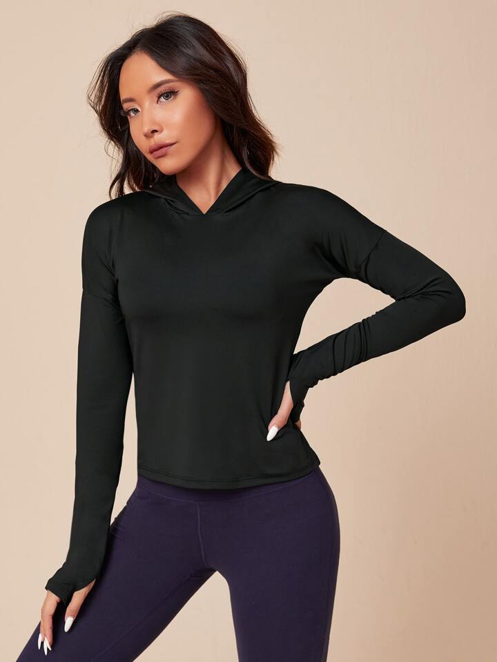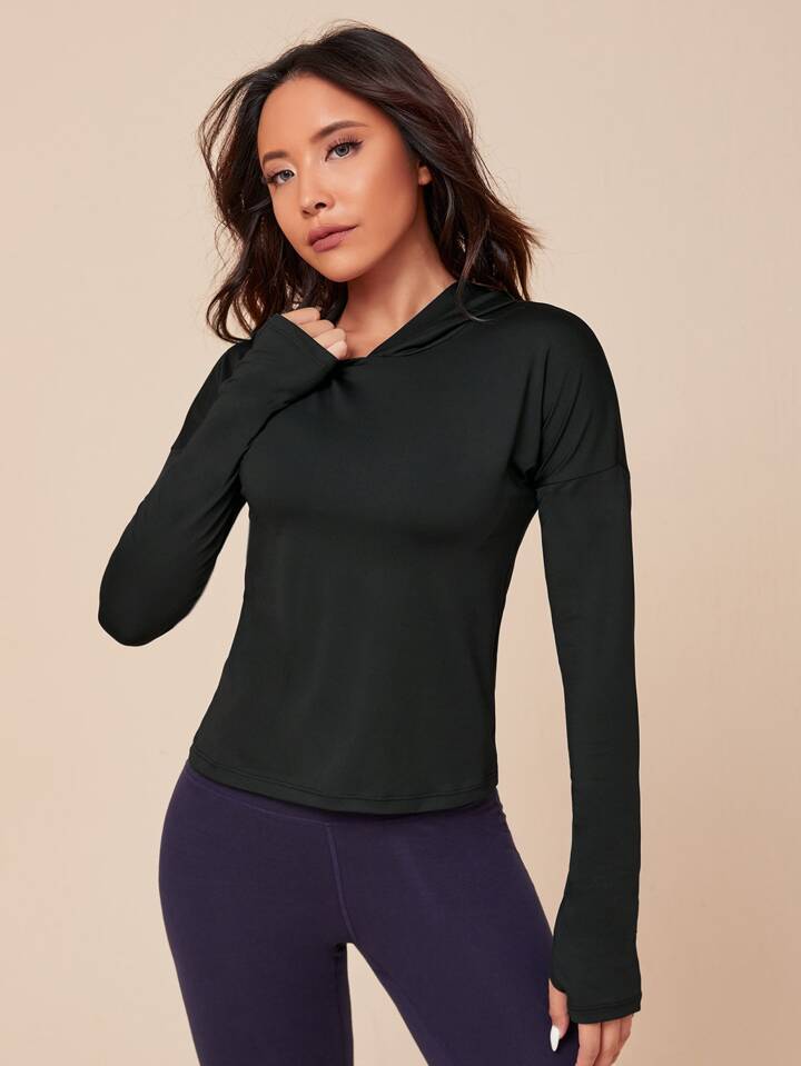 Einfarbiges Sport Sweatshirt mit Kapuze & Daumenschlaufen
