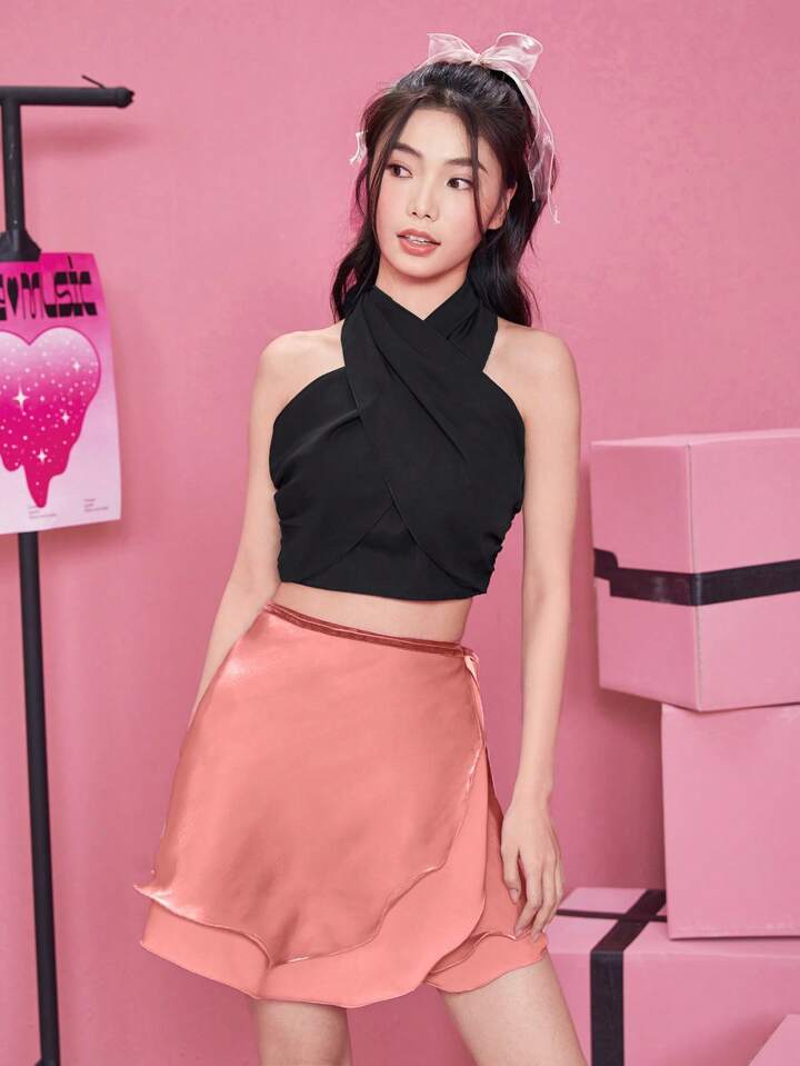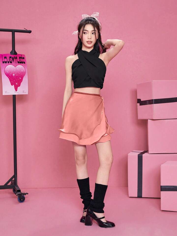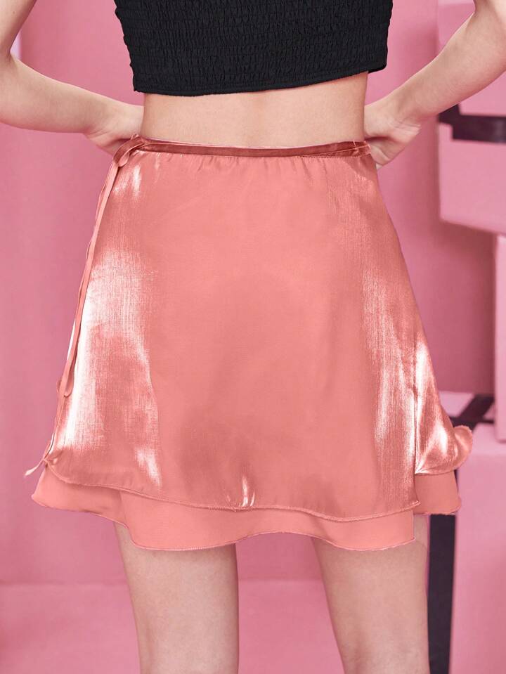 Wickelrock mit Einfarbig Wellensaum, seitlichem Knoten