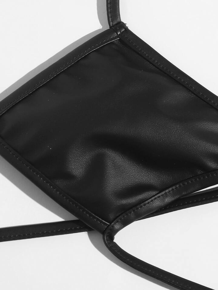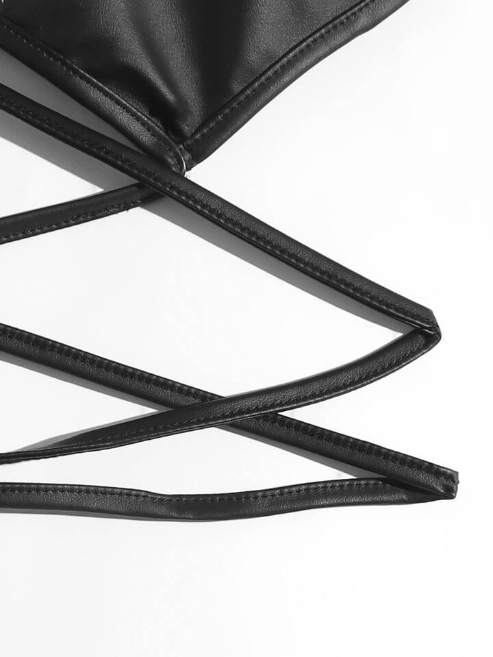 Einfarbiger PU Leder BH mit Träger und Criss-Cross