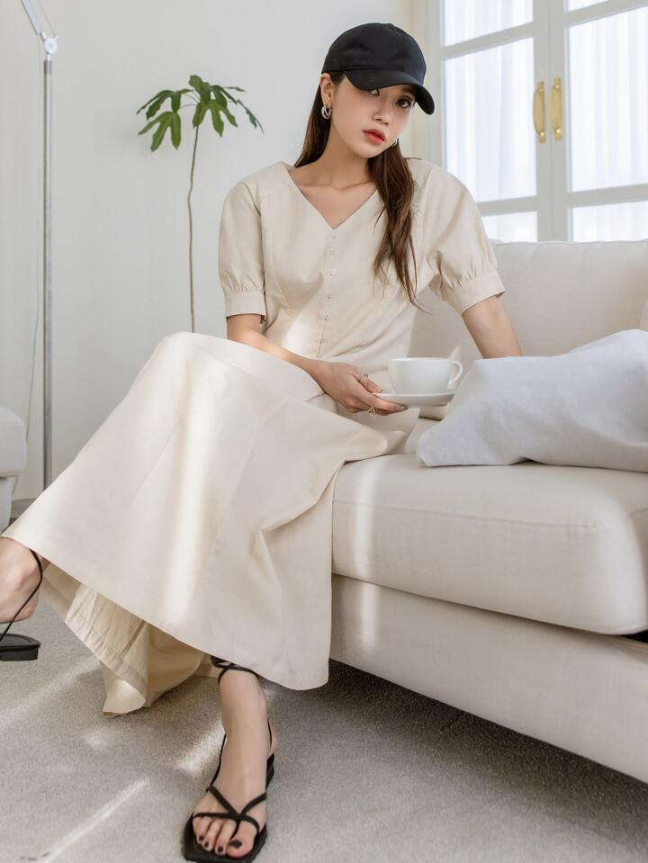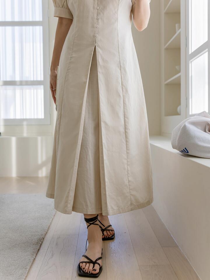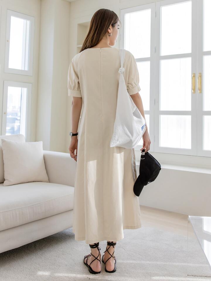 Kleid mit Puffärmeln, Reißverschluss hinten, Falten, Saum