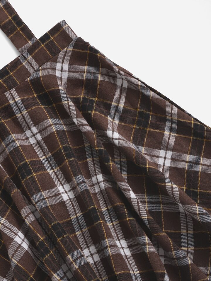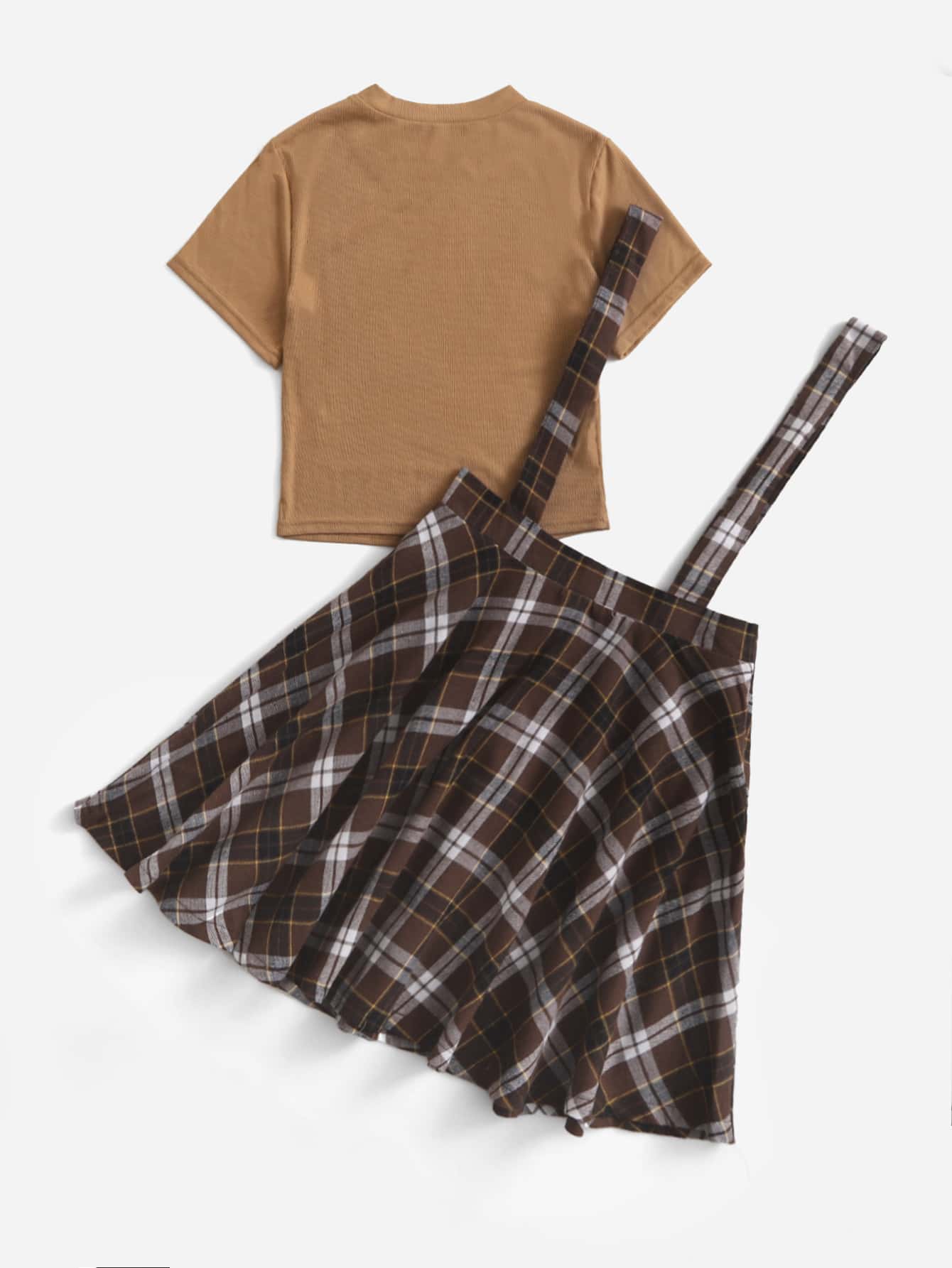 Einfarbiges T-Shirt & Rock mit Plaid Muster, Riemen