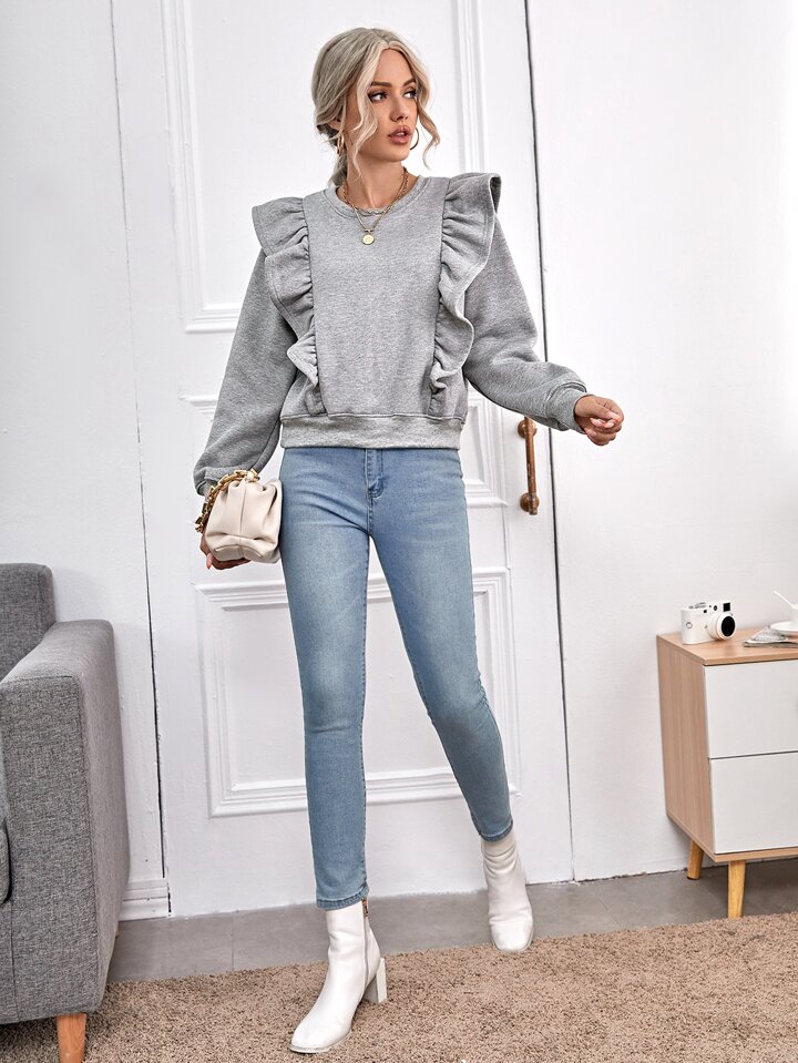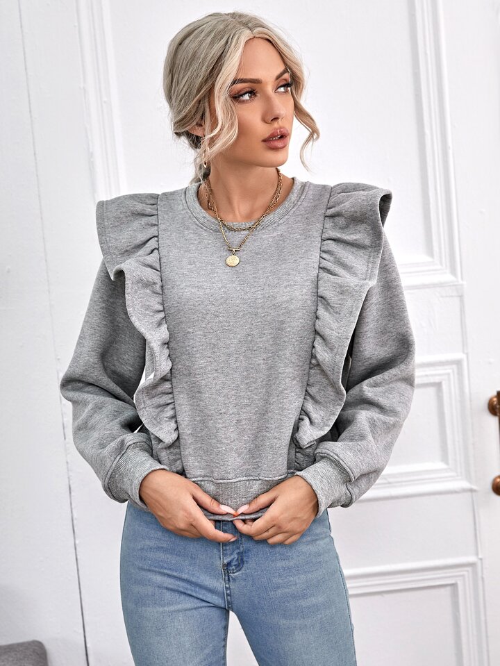 Einfarbiges Sweatshirt mit Rüschenbesatz