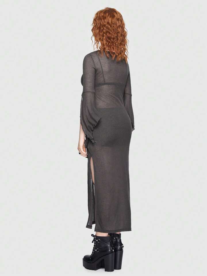 Kleid mit Einfarbig transparentem Netz, ohne Dessous Set