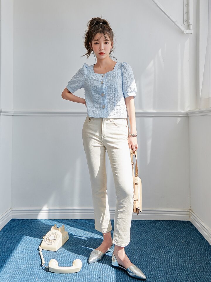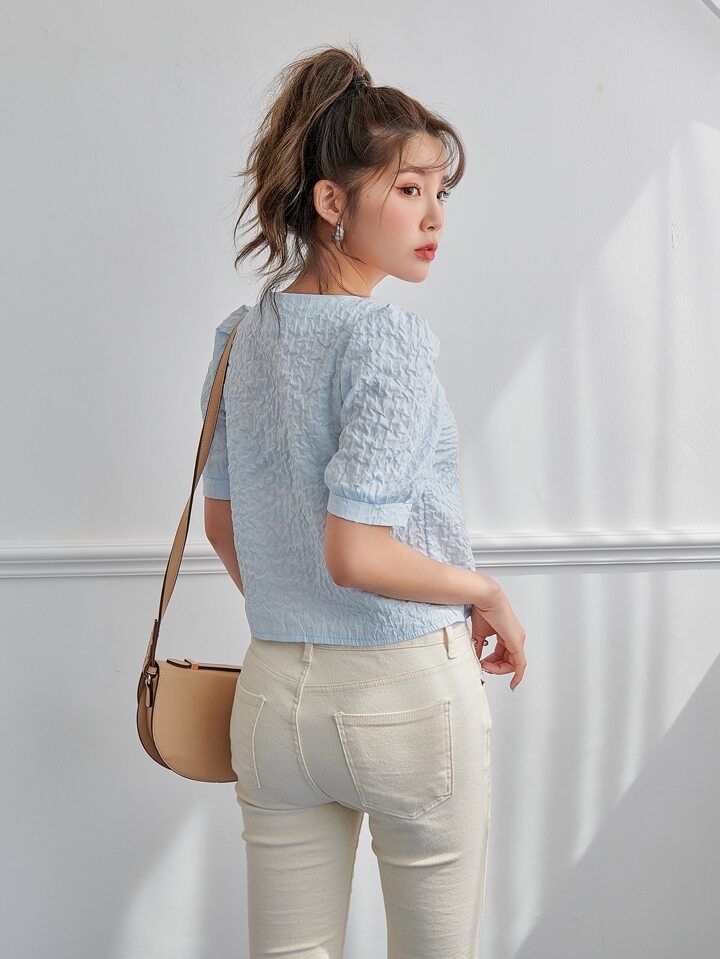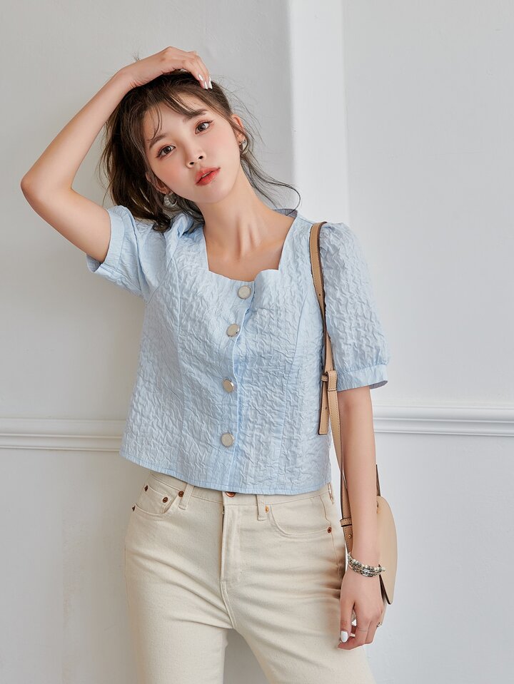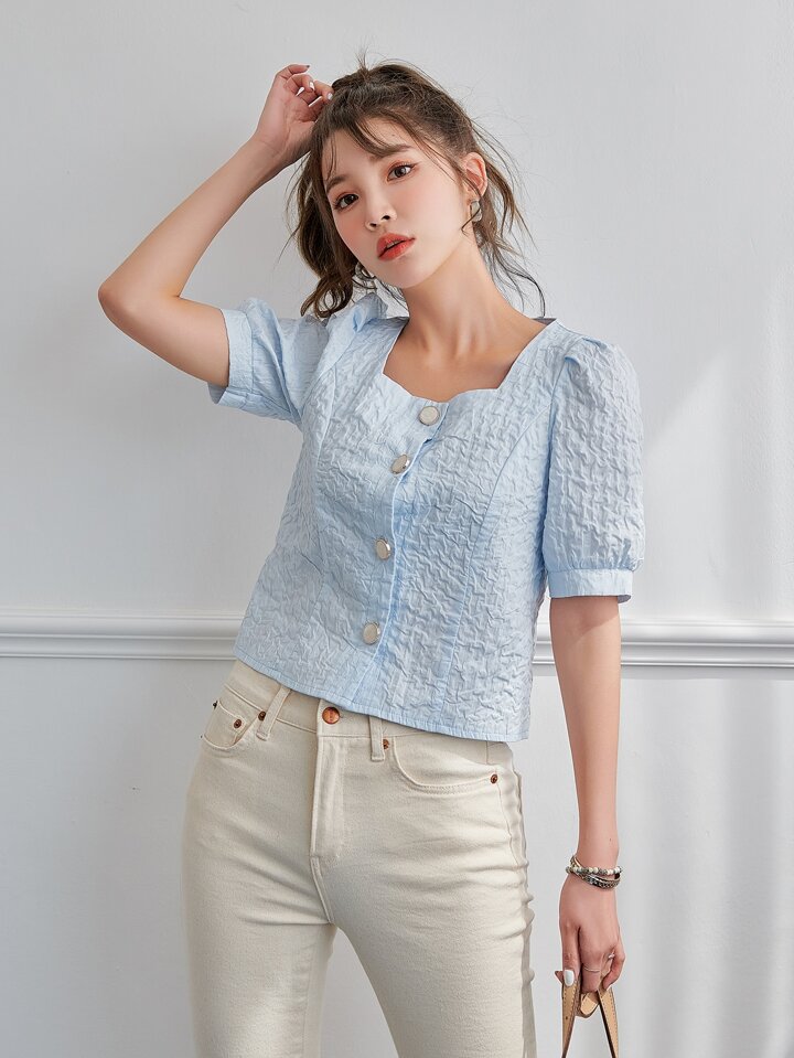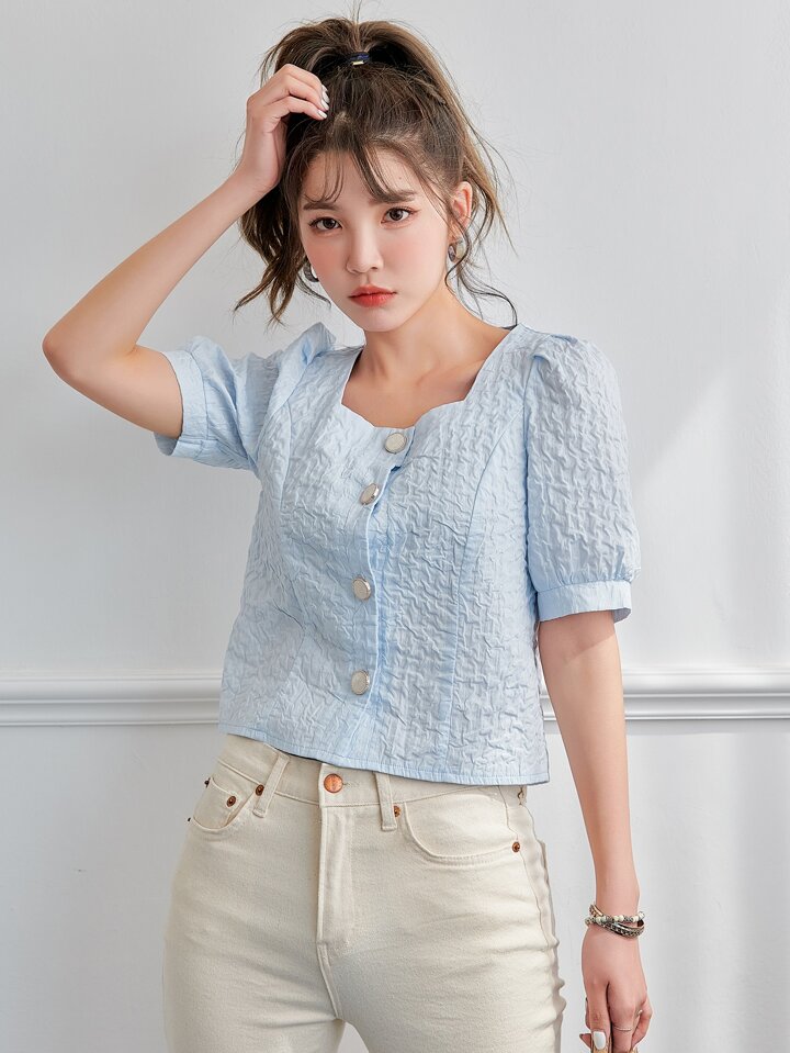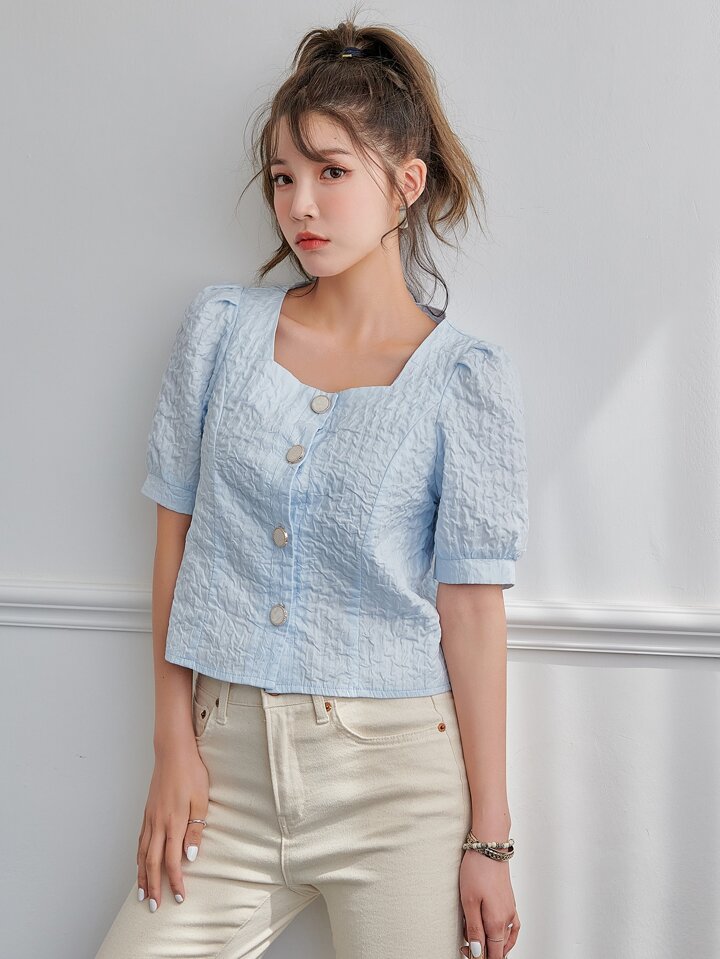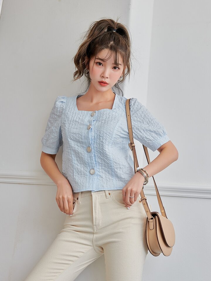 Einfarbige Bluse mit quadratischem Kragen und Puffärmeln