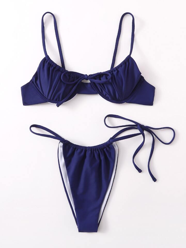 Unifarben Tanga Bikini Set für Sommerurlaub am Strand