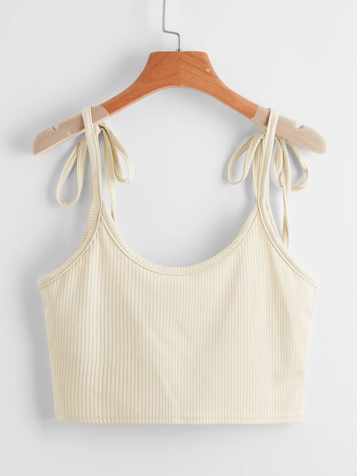 Einfarbiges geripptes Cami Top mit Band auf Schulter