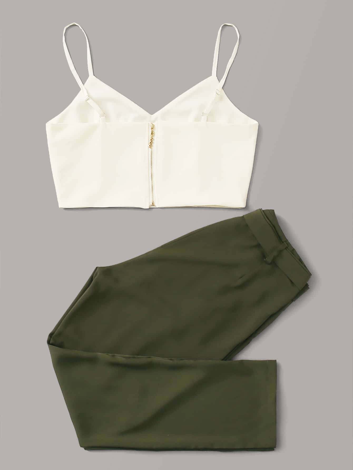 Einfarbiges Cami Top mit V-Kragen & Hose mit Gürtel