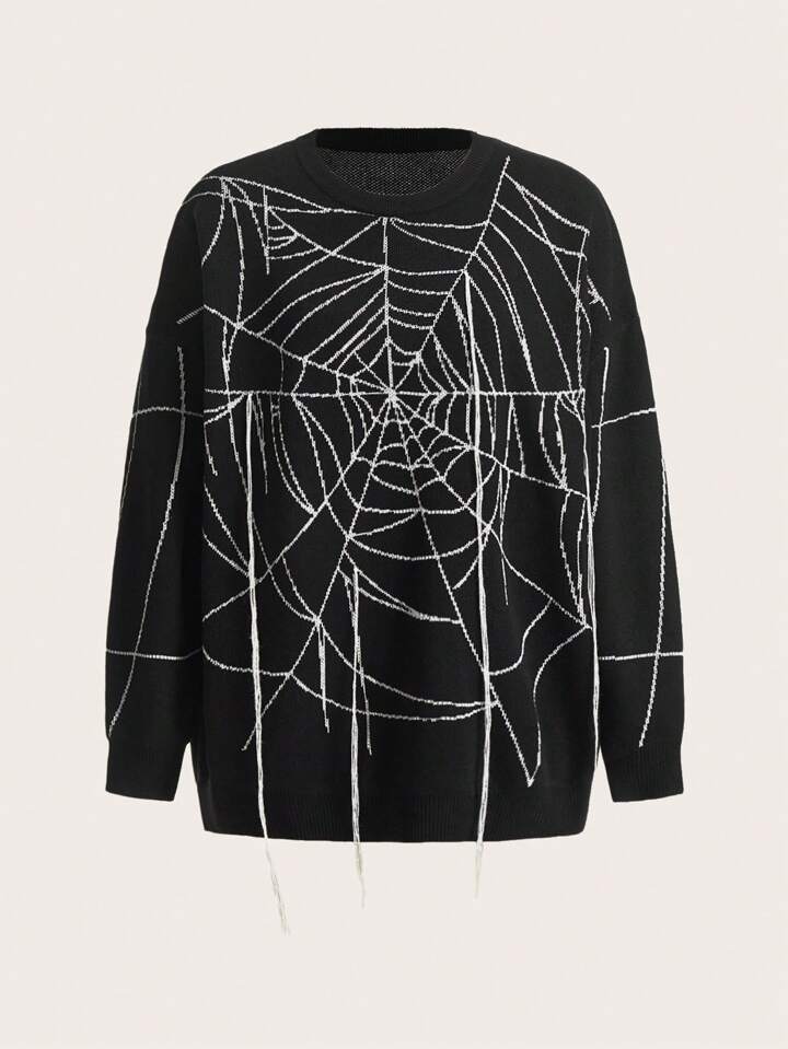 Pullover mit Spinnennetz Muster, Drop Shoulder