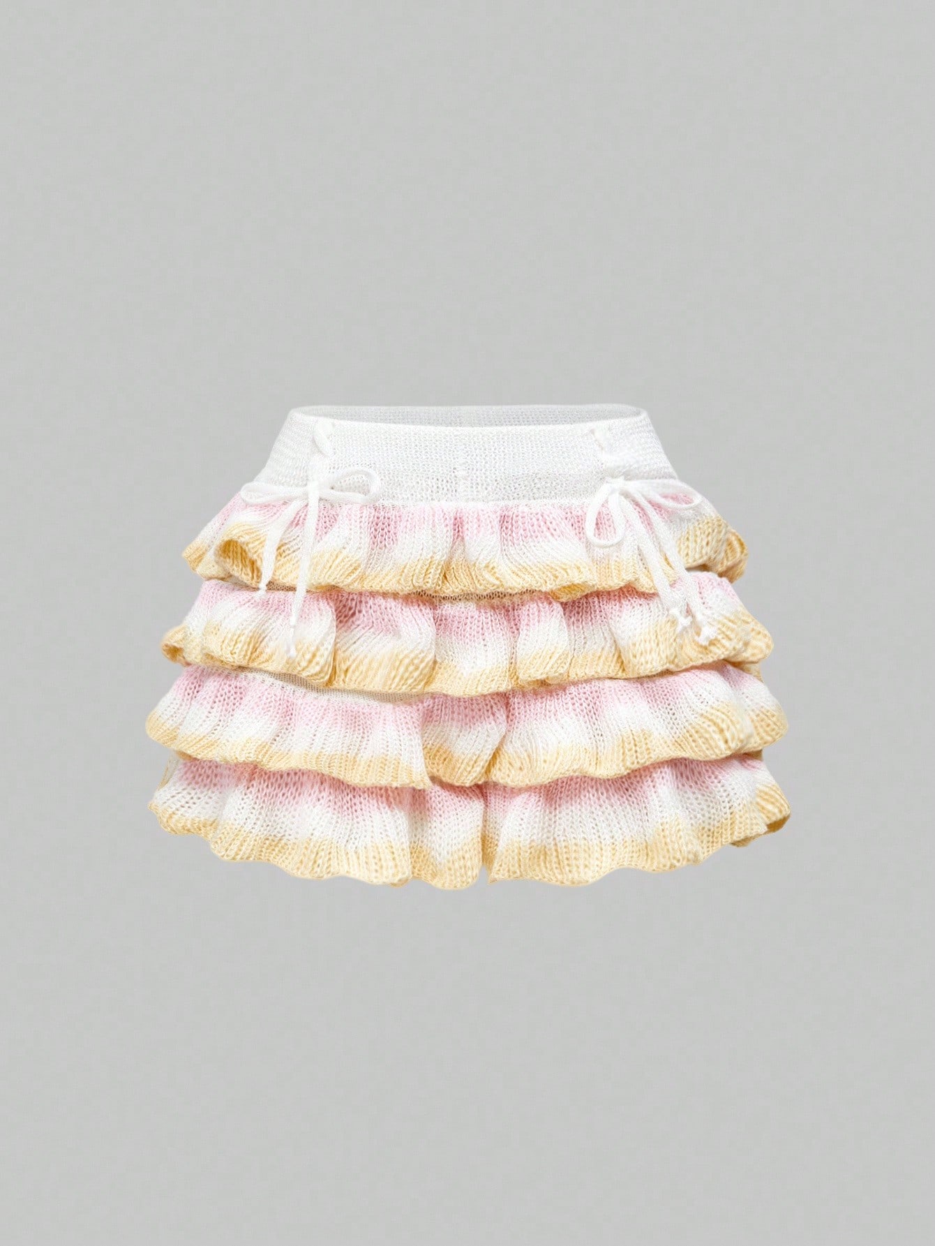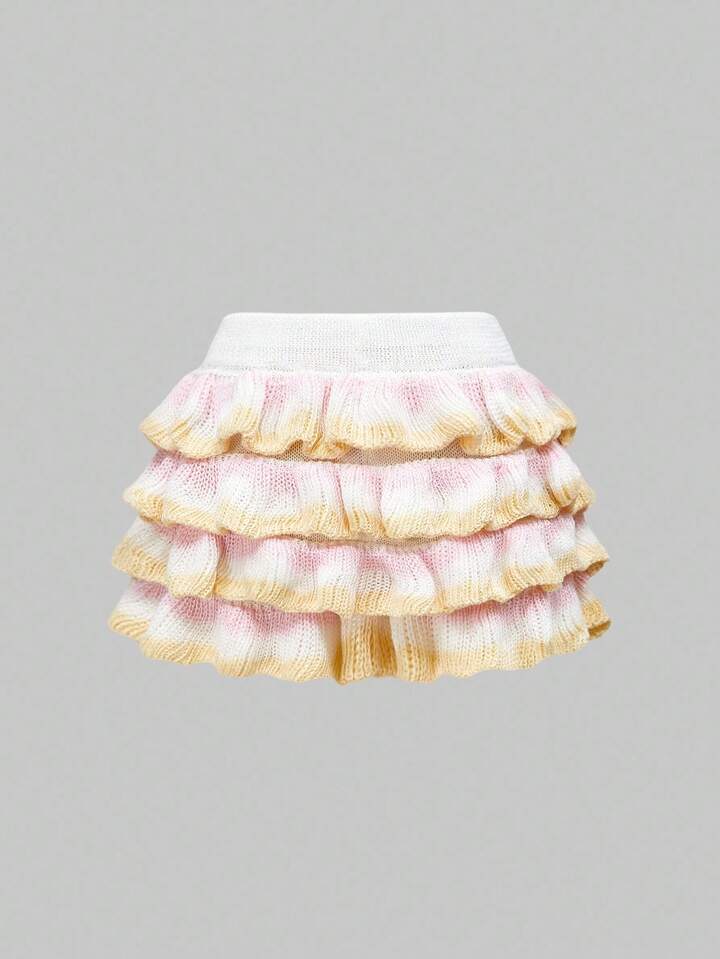 Süße & Kawaii Kuchen-Stil geschichteter Rüschen-Saum Regenbogen-Farbverlauf gestrickte Damen Shorts Rock