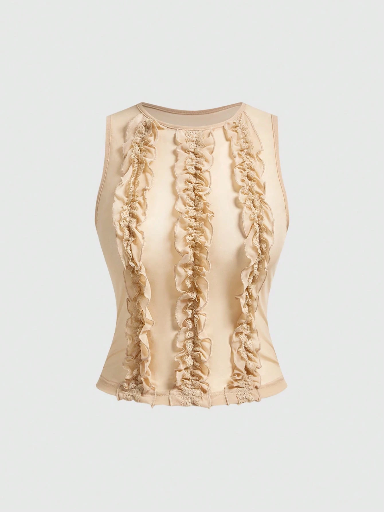 Fairycore Vintage Blumen Spitze Patchwork Rüschen Saum Damen Top
