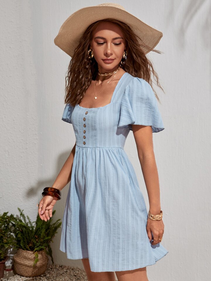 A-Linie Kleid mit quadratischem Kragen und Schmetterlingärmeln