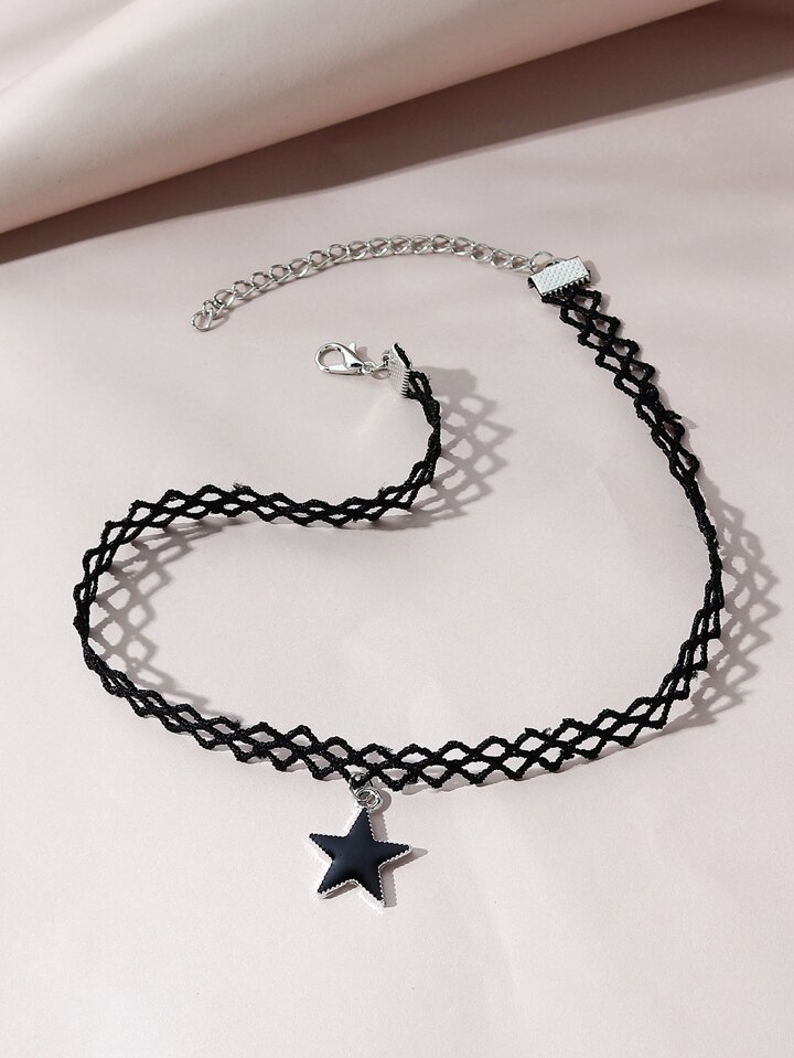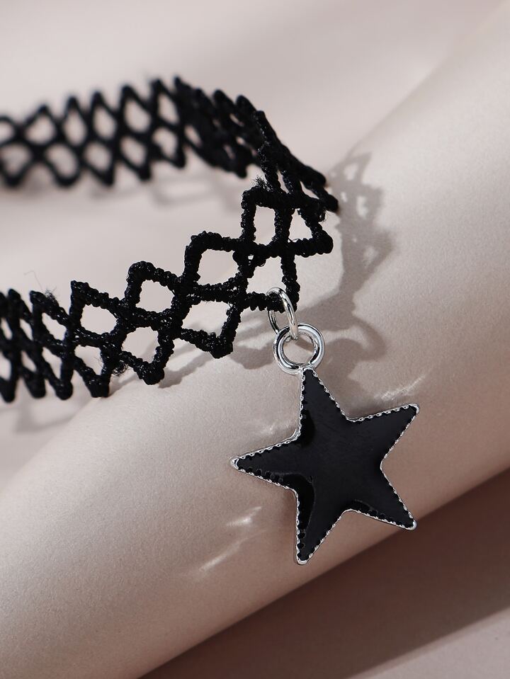 Stern-Charm Choker 1 Alles passende Mode Cut Out Spitze Öltropfen Stern Schlüsselbein Kette für Frauen Sexy Gothic Stil Mesh Libellen Quadrat Strass eingelegte Kette