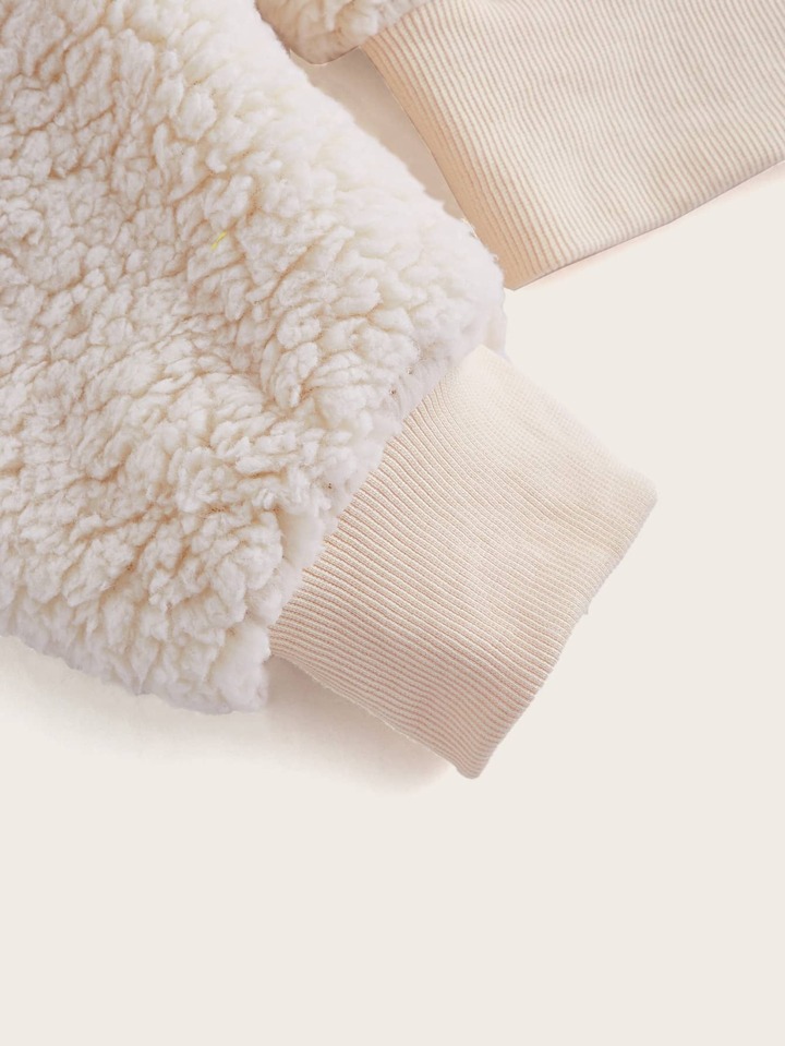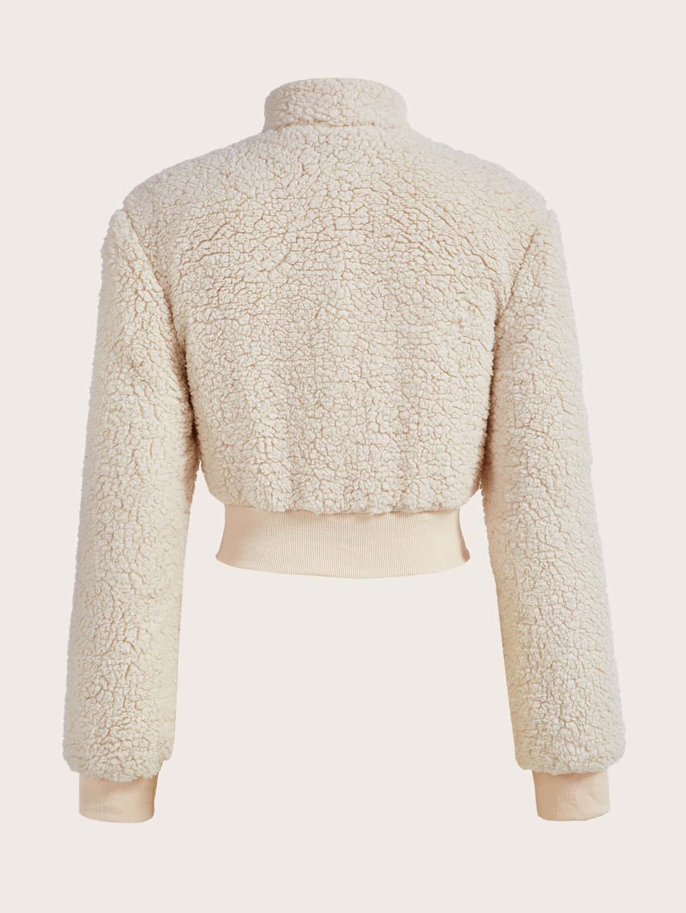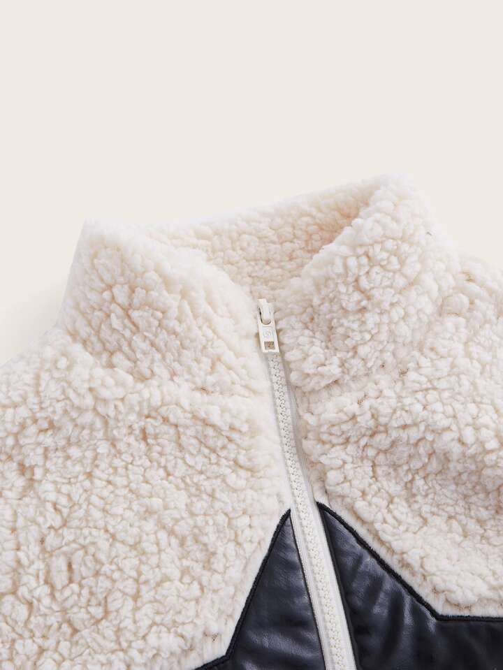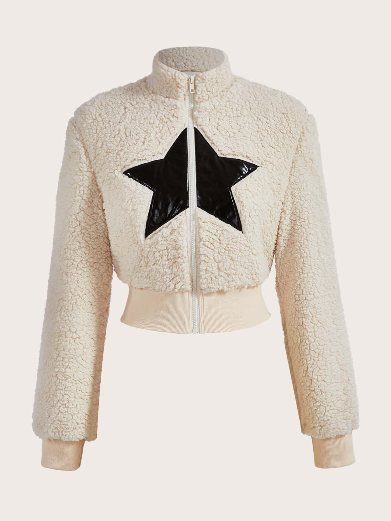 Teddy Jacke mit Stern Muster, Reißverschluss, Crop
