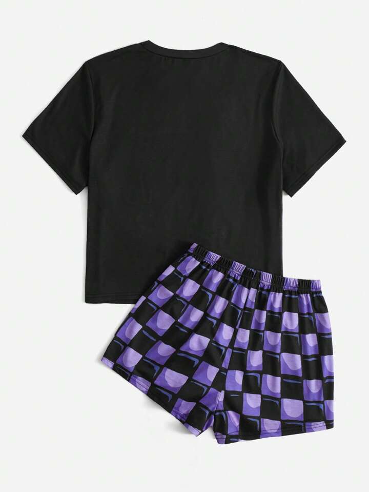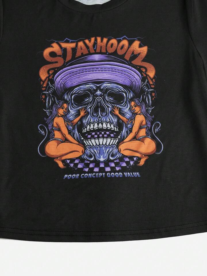 Stayhoom Project Schädel Muster, T-Shirt mit & Plaid Shorts mit Pyjama Set mit