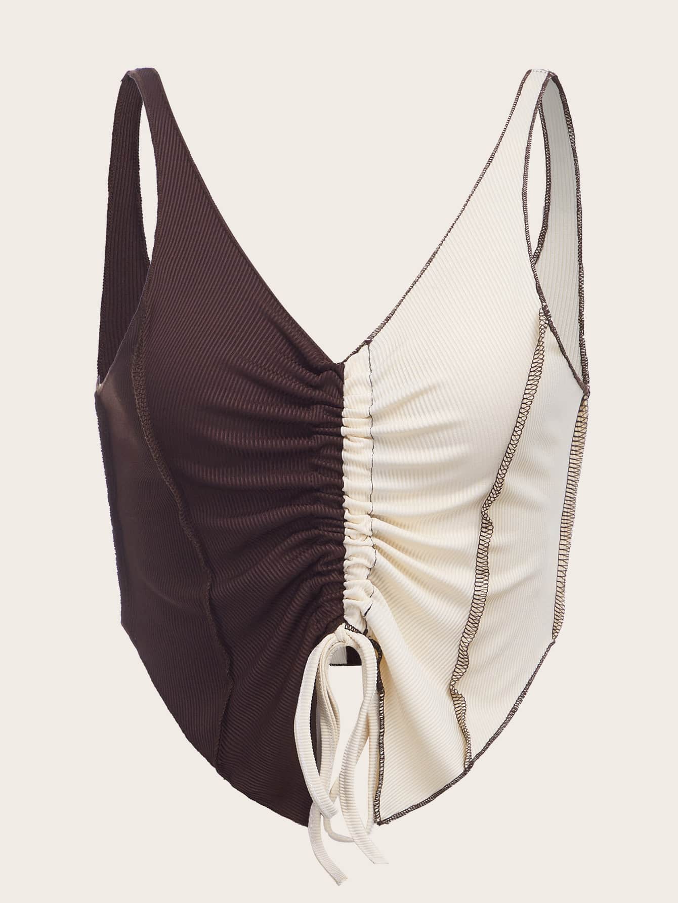 Tank Top mit Stich Besatz, Farbblock, Tunnelzug, Rüschen