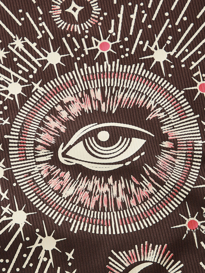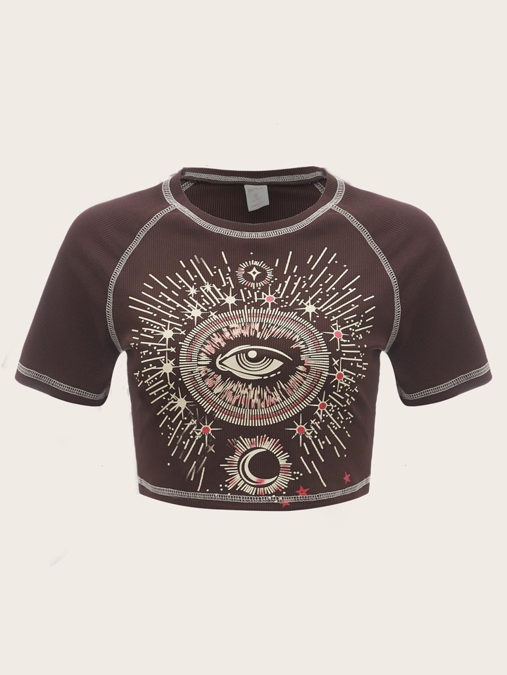 Crop T-Shirt mit Stich Besatz, Auge Grafik
