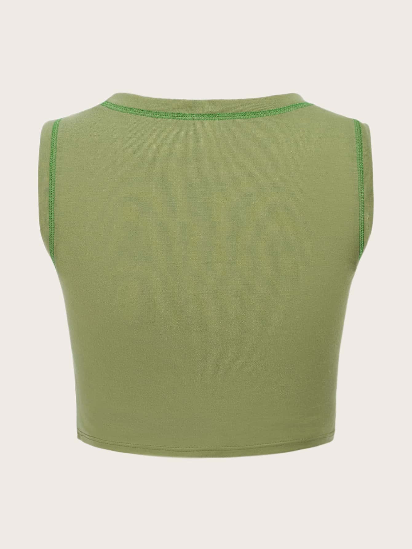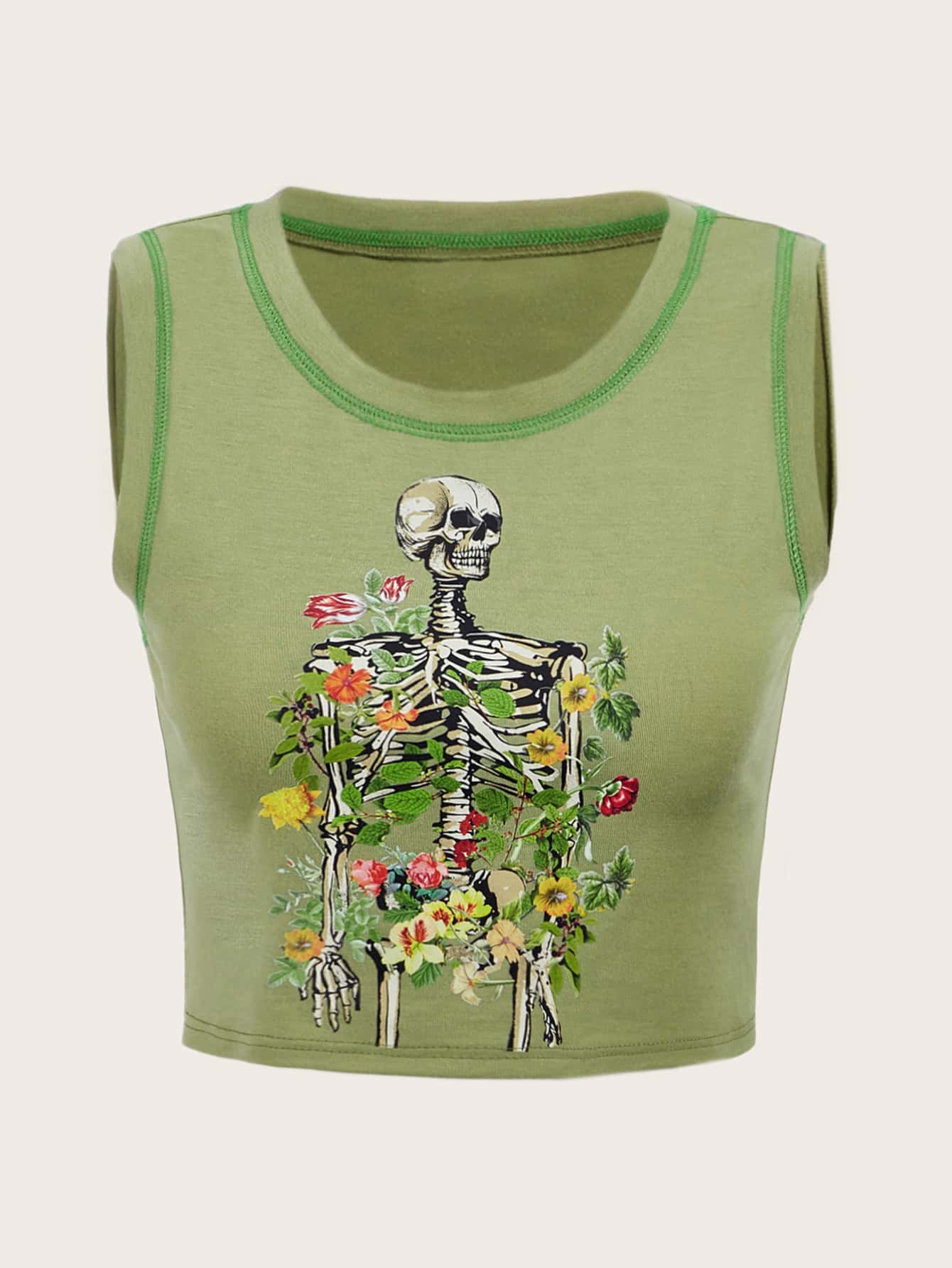 Tank Top mit Stich Besatz, Blume & Schädel Grafik