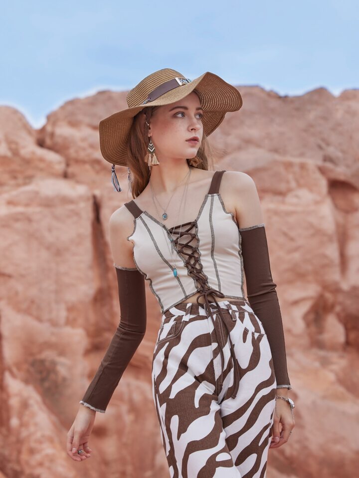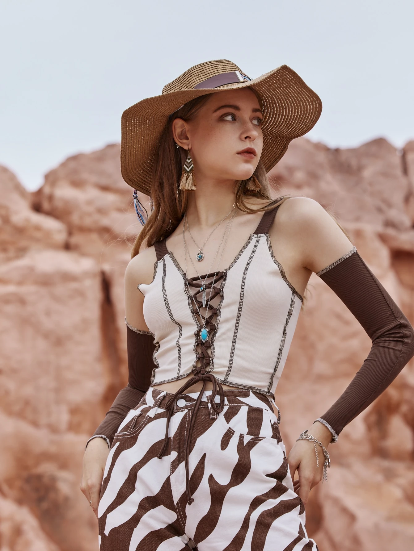 Top mit Stich Besatz, Band & 1 Paar Ärmelschützer