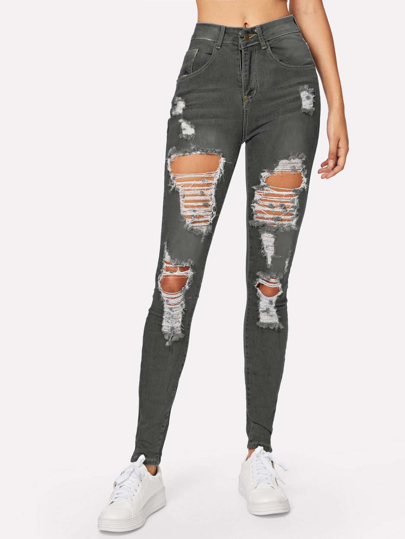 Schmale Jeans mit Waschung, hoher Dehnung und Riss
