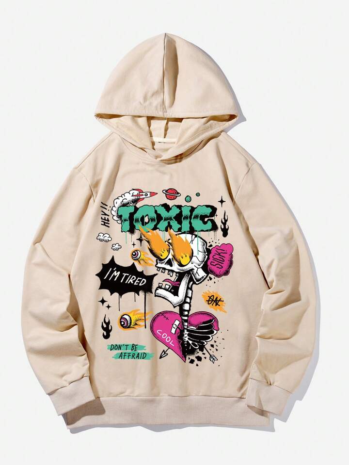Straight Ahead Männer Hoodie mit Cartoon & Buchstabe Grafik,