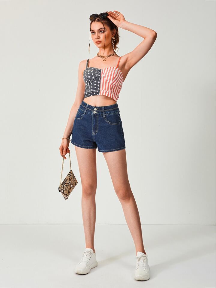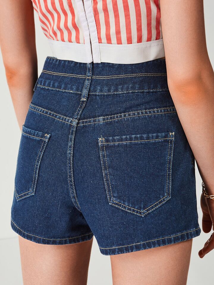 Denim Shorts mit geradem Beinschnitt und Knopf vorne