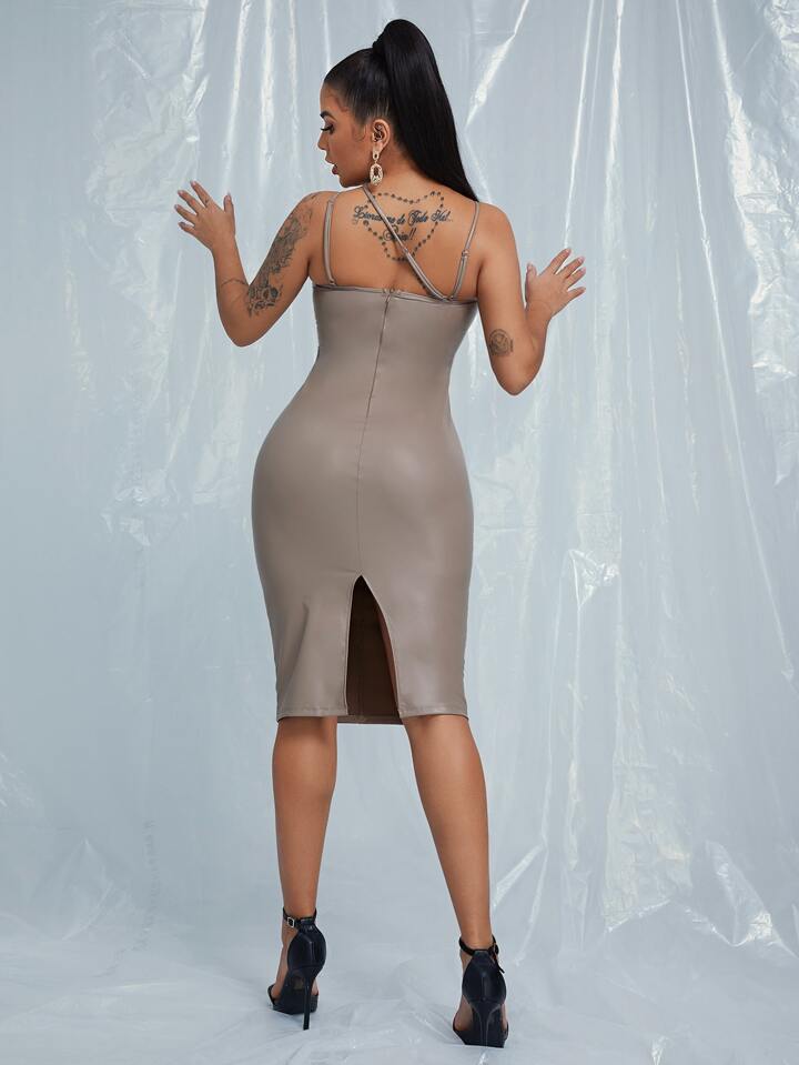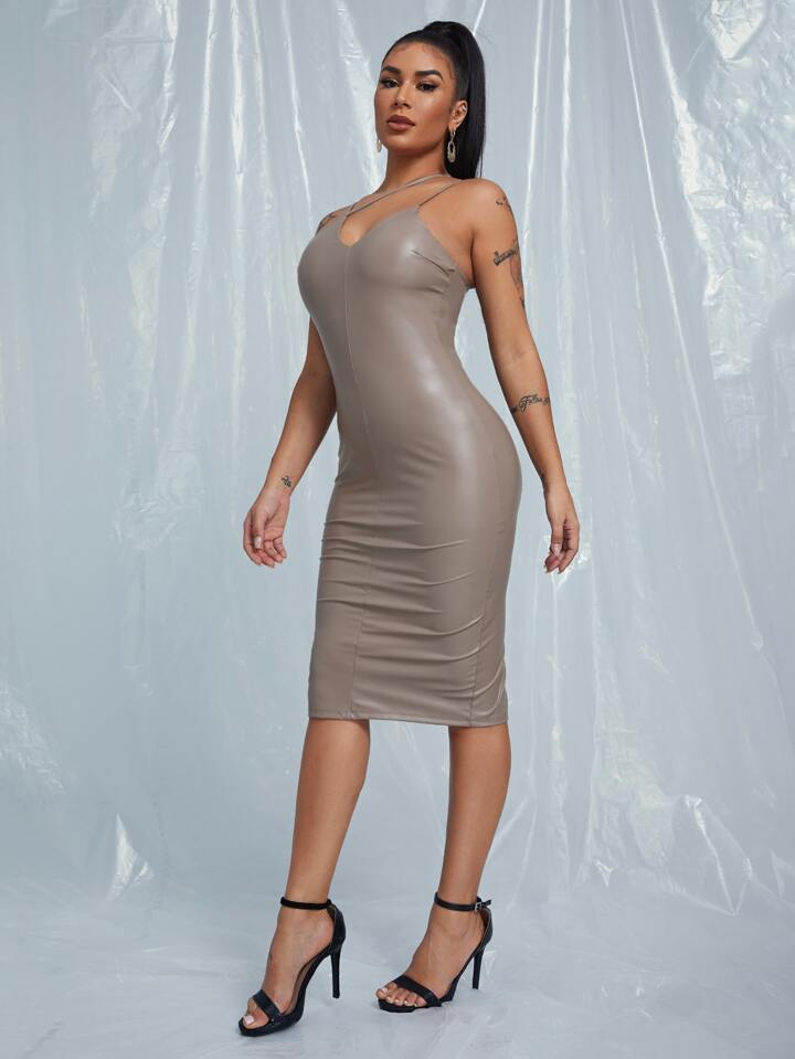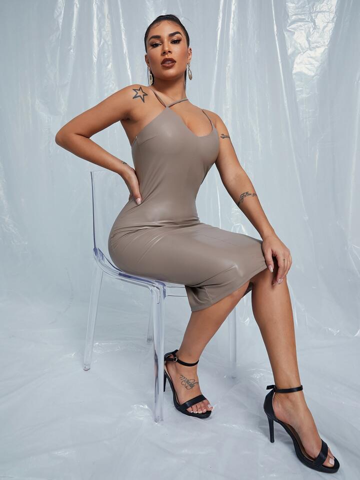 PU Leder Kleid mit Halsband