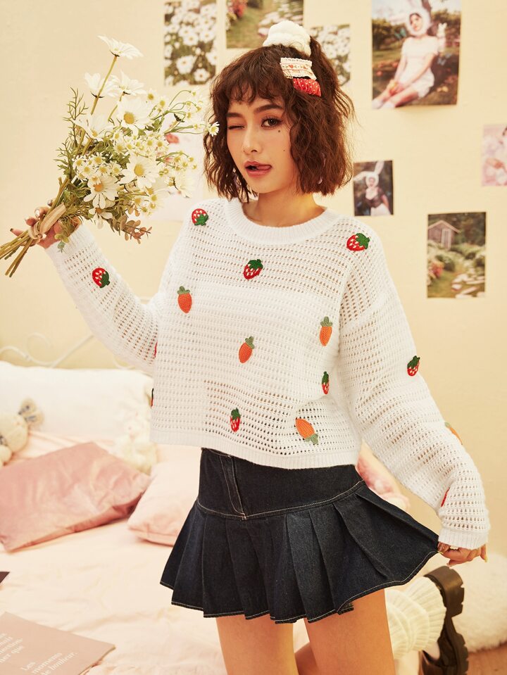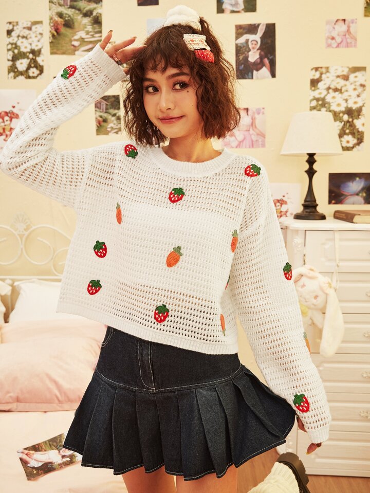 Pullover mit Erdbeere & Karotte Applikation, Loch