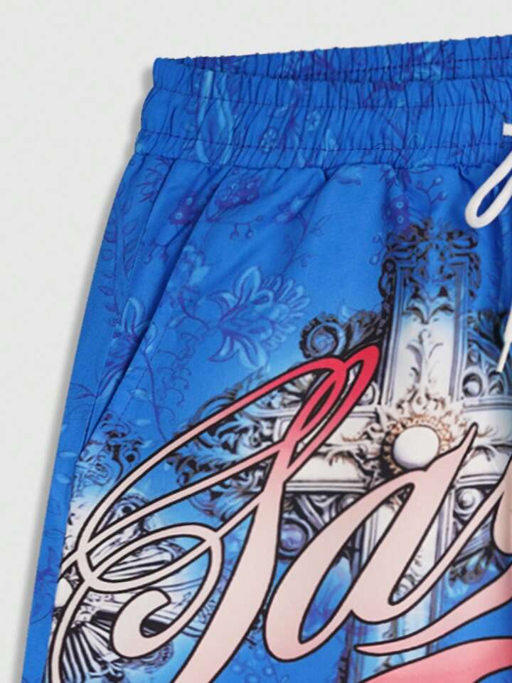 Street Life 2 Stücke/Set Herren Bedrucktes Rundhals Kurzarm T-Shirt & Shorts Set, geeignet für den täglichen Gebrauch im Frühling/Sommer