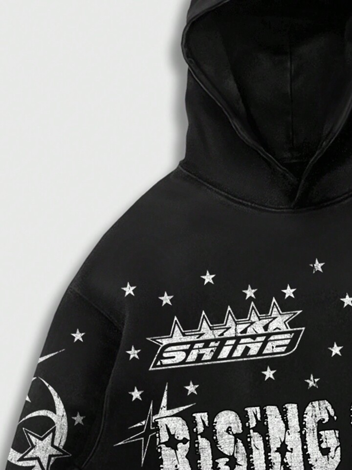 Street Life 2 Stück/Set Herren Streetwear Grafik Sweatshirt und Jogginghose Jogginganzug, geeignet für täglichen Lässig Wear