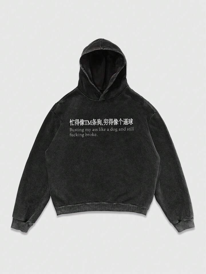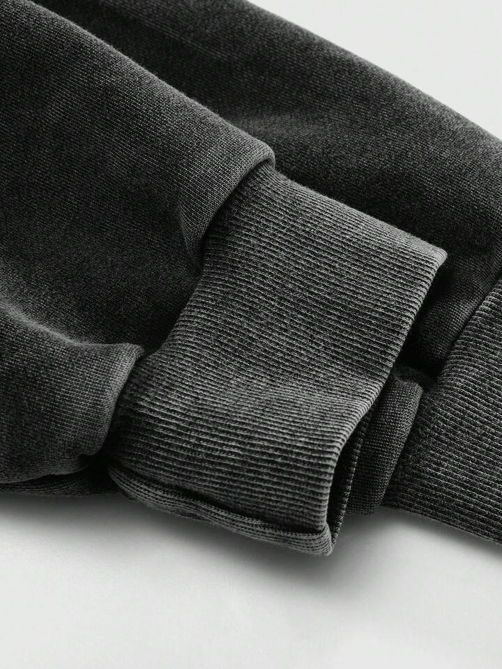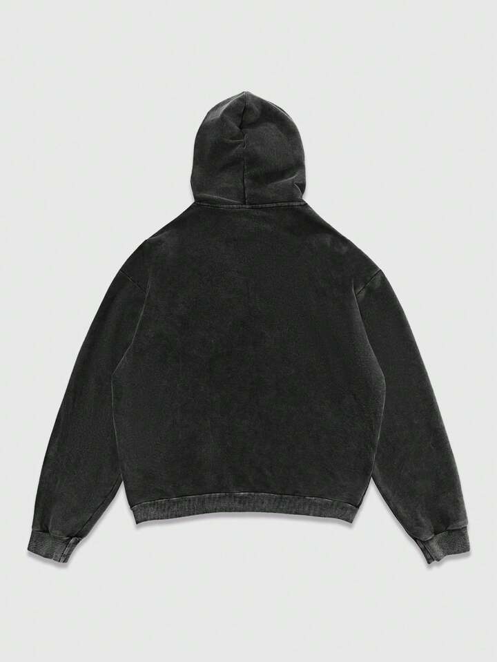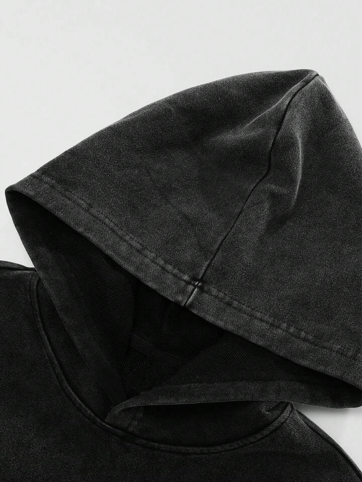 Street Life Schwarzer säuregewaschener Kapuzenpullover für Herren, ohne Tasche