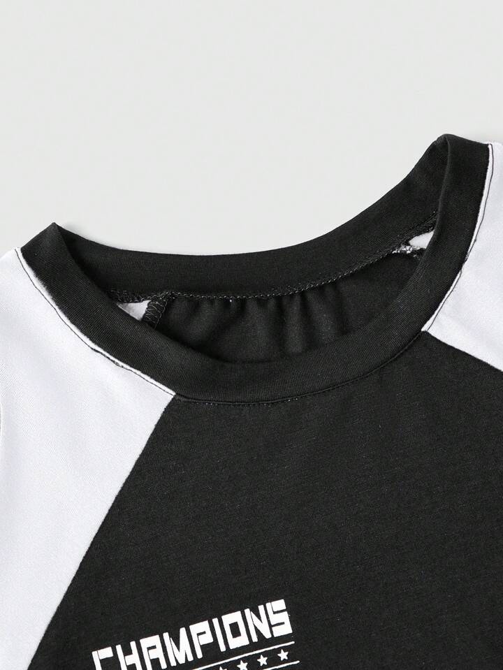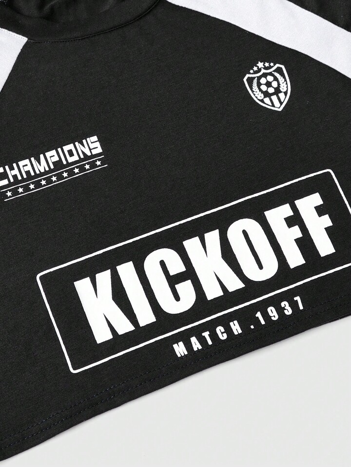 Street Life Lässiges, sexy, weites Crop T-Shirt mit Fußballstar- und Buchstaben-Muster, für die Schule